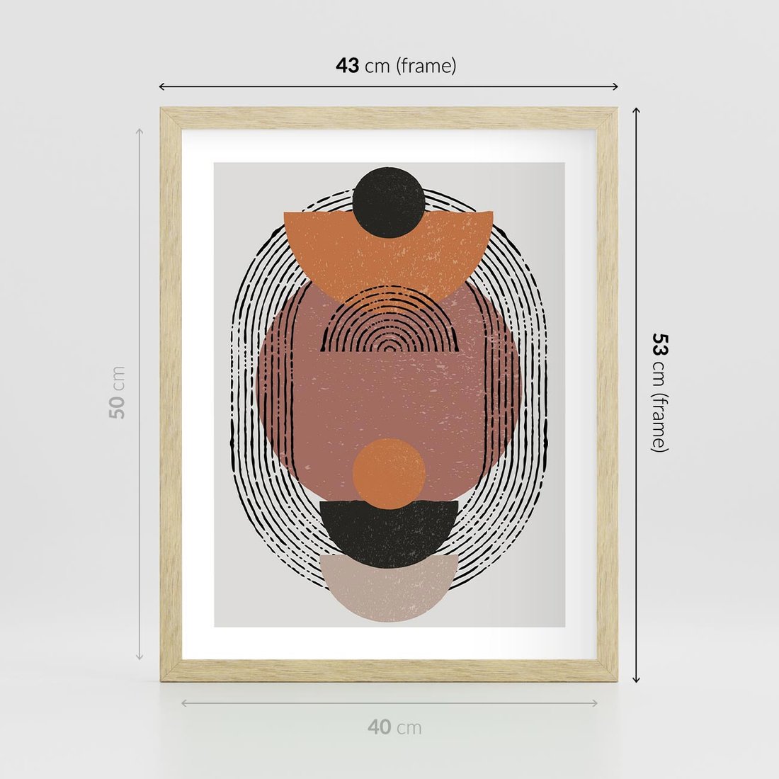 Plakat w ramie 40x50 - Abstrakcja w Odcieniach Brązu i Beżu - geometria, abstrakcyjna grafika - rama drewno