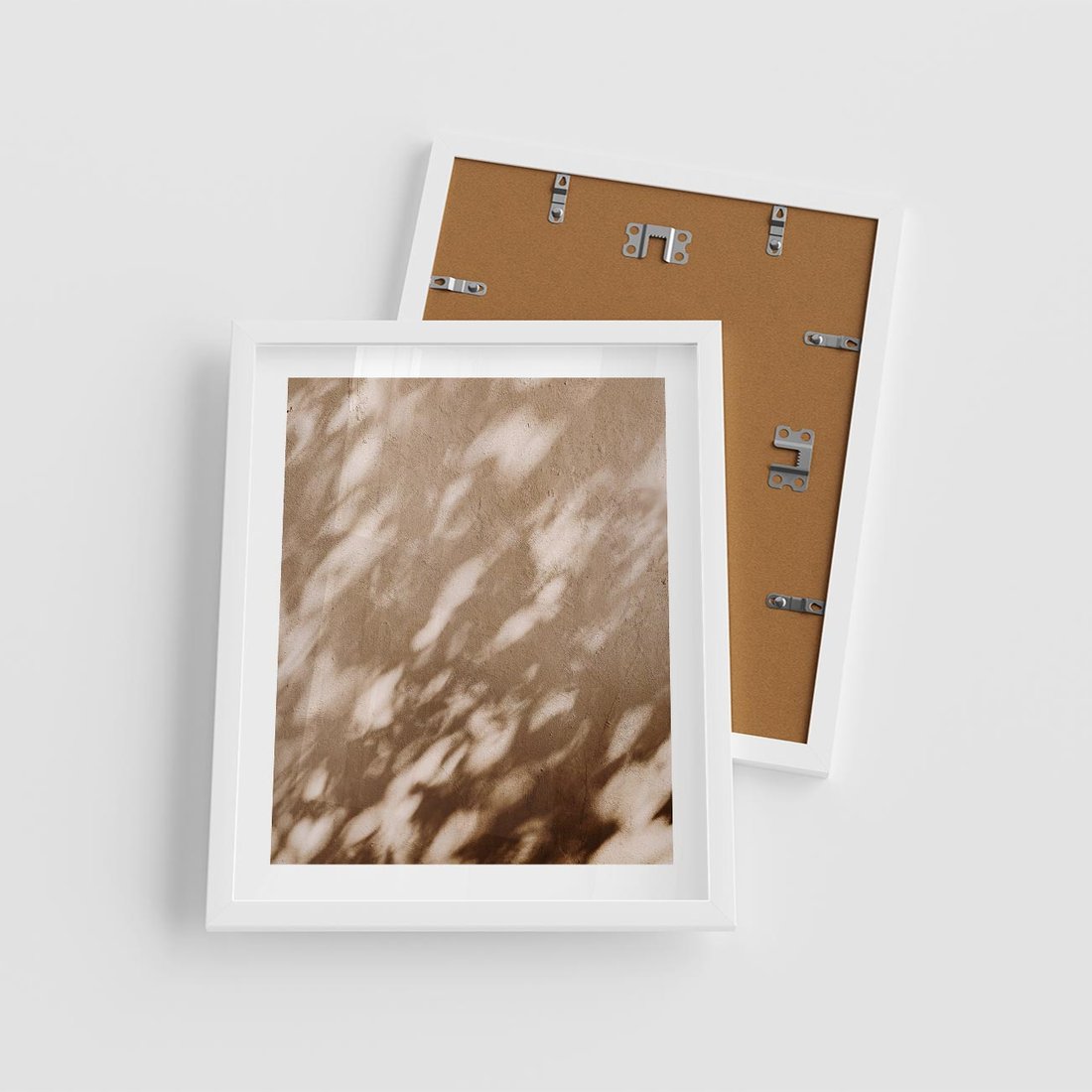 Plakat w ramie 40x50 - Abstrakcyjna Kompozycja: Cień na Ścianie - cień na ścianie, beżowe kolory - rama biała