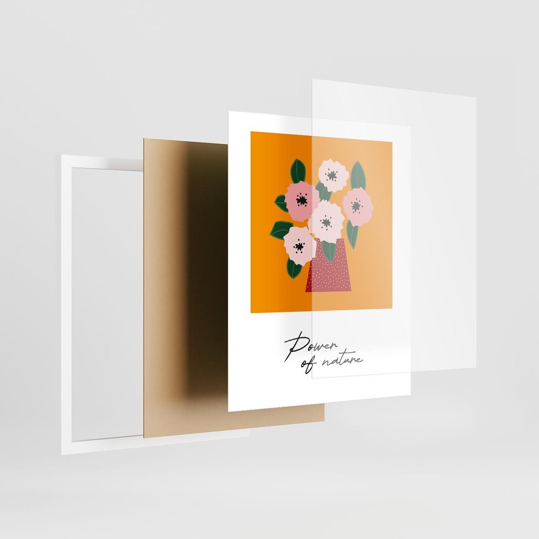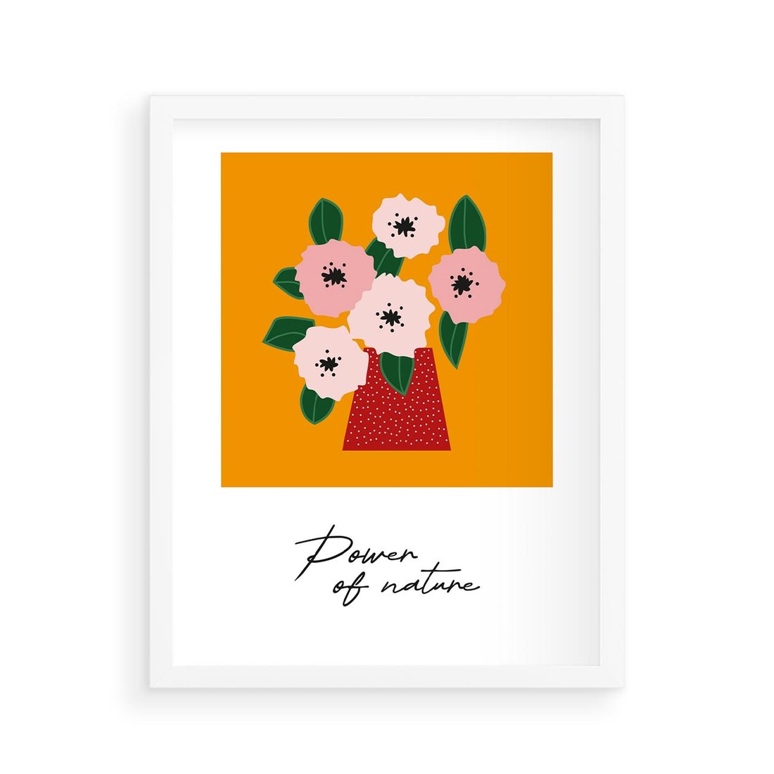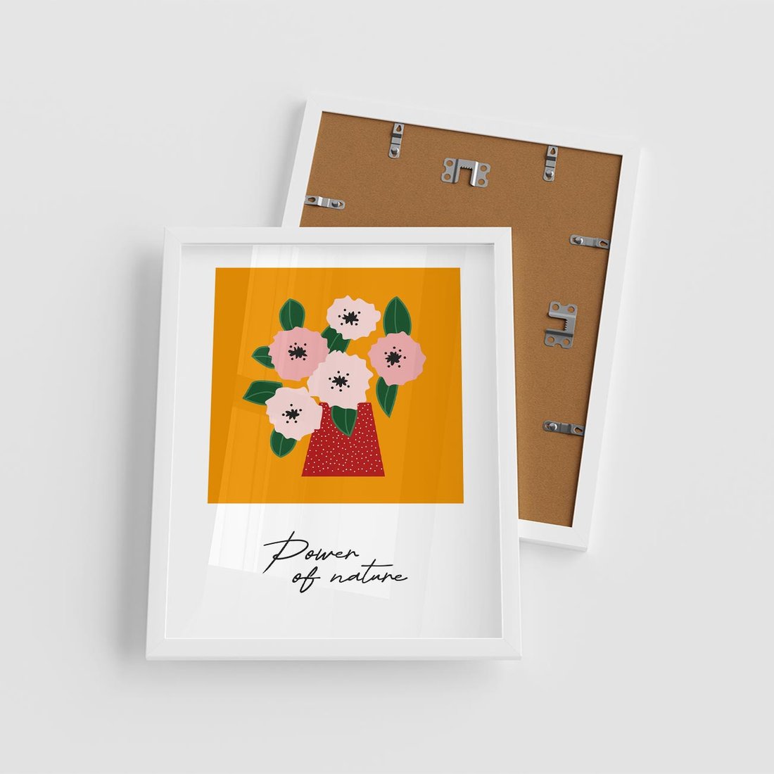 Ten plakat to połączenie sztuki nowoczesnej i abstrakcji, przedstawiający kwiaty w wazonie na intensywnym żółtym tle. Kompozycja ta tworzy wyrazistą wizualną ekspresję, przynosząc do przestrzeni odrobinę jasności i energii w formie artystycznego wydźwięku.