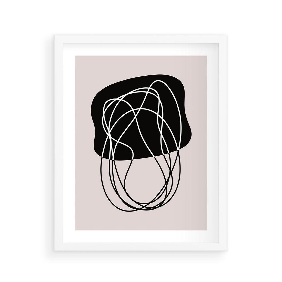 Plakat w ramie 40x50 - Abstrakcyjne Harmonie - abstrakcyjne szkicowane linie, minimalizm - rama biała