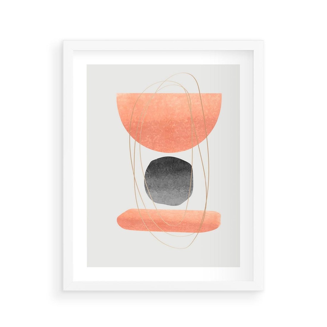 Plakat w ramie 40x50 - Abstrakcyjne Plamy z Złotymi Liniami - abstrakcja, boho plamy - rama biała