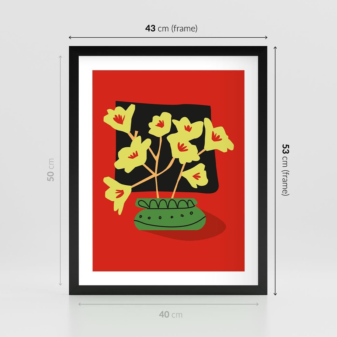 Plakat w ramie 40x50 - Abstrakcyjne Przenikanie - abstrakcyjne kwiaty, czerwone tło - rama czarna