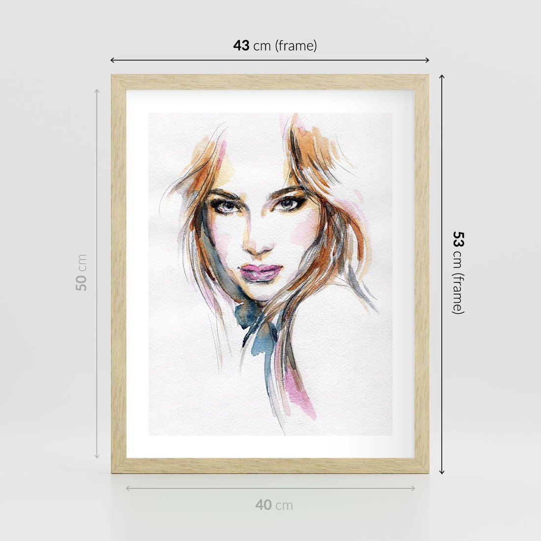 Plakat w ramie 40x50 - Abstrakcyjny portret kobiecy - grafika, kobieta - rama drewno