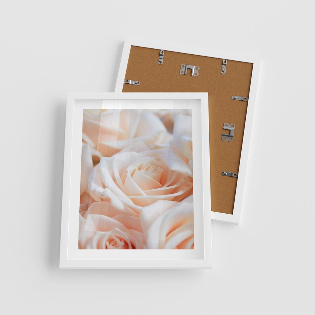 Plakat w ramie 40x50 - Aromatyczna Piękność - płatki herbacianej róży, kwiaty - rama biała