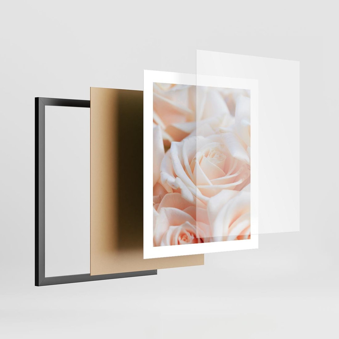 Plakat w ramie 40x50 - Aromatyczna Piękność - płatki herbacianej róży, kwiaty - rama czarna