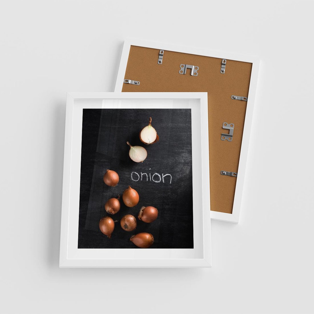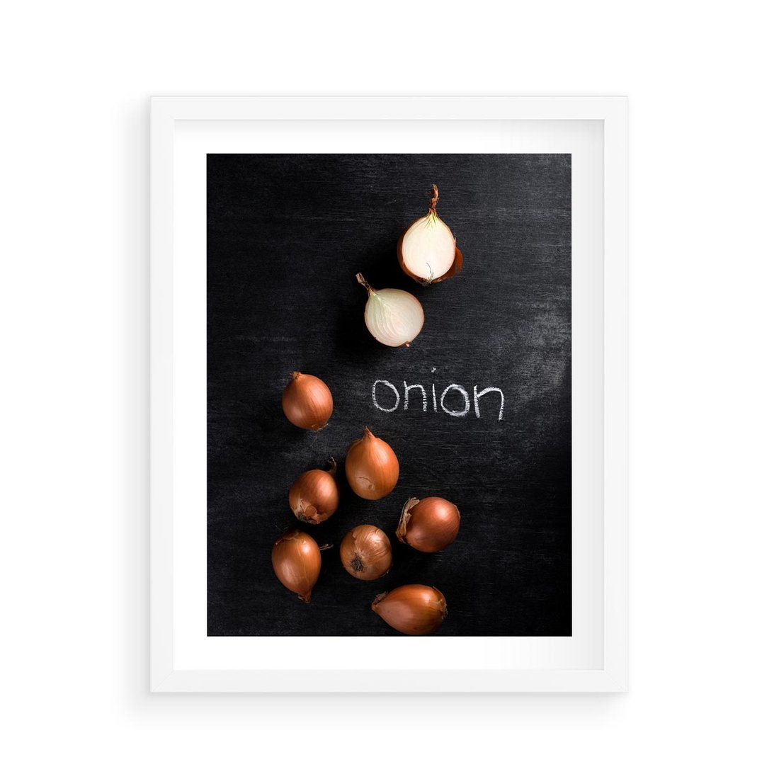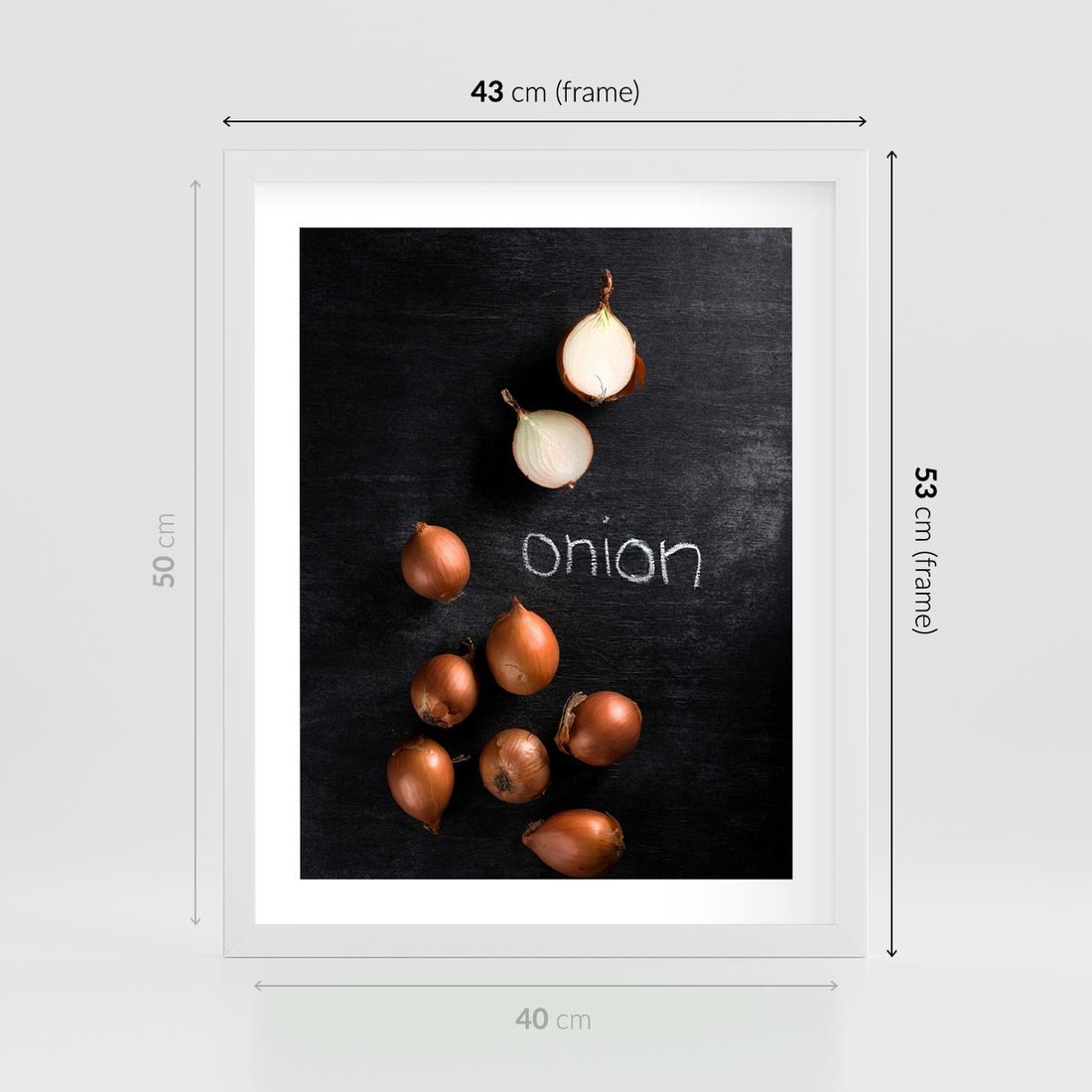 Plakat w ramie 40x50 - Aromatyczne Inspiracje - cebula, kuchnia - rama biała