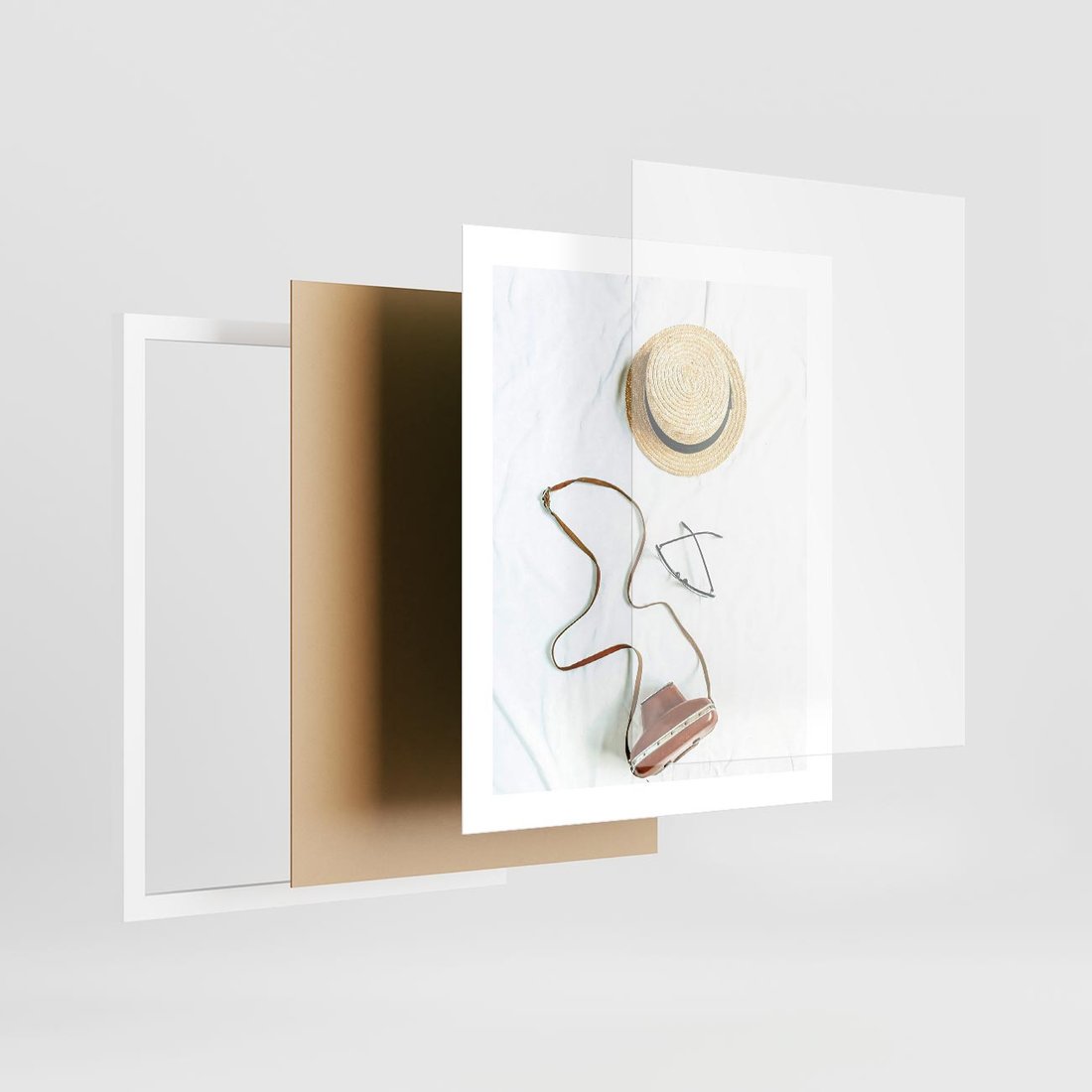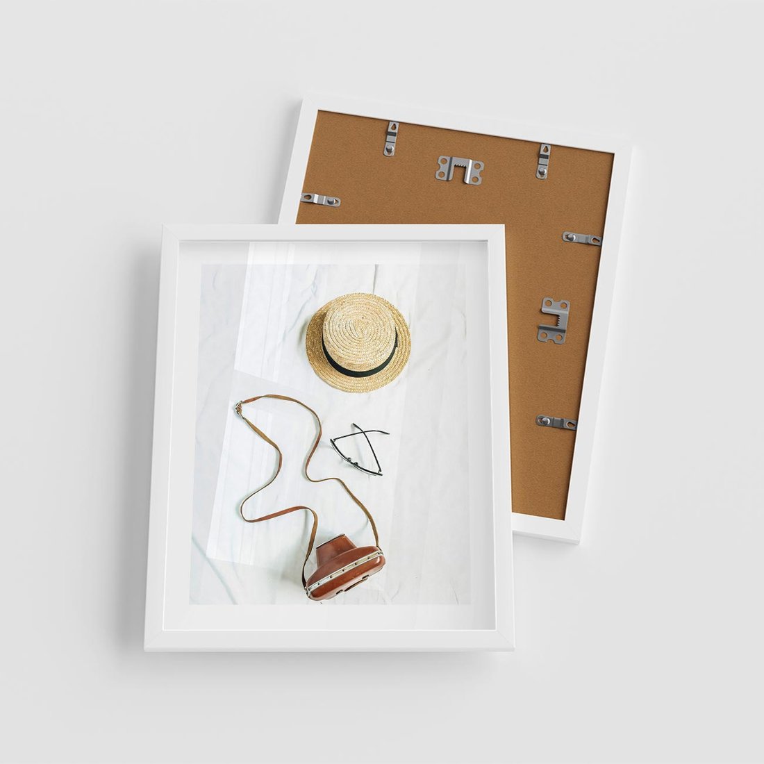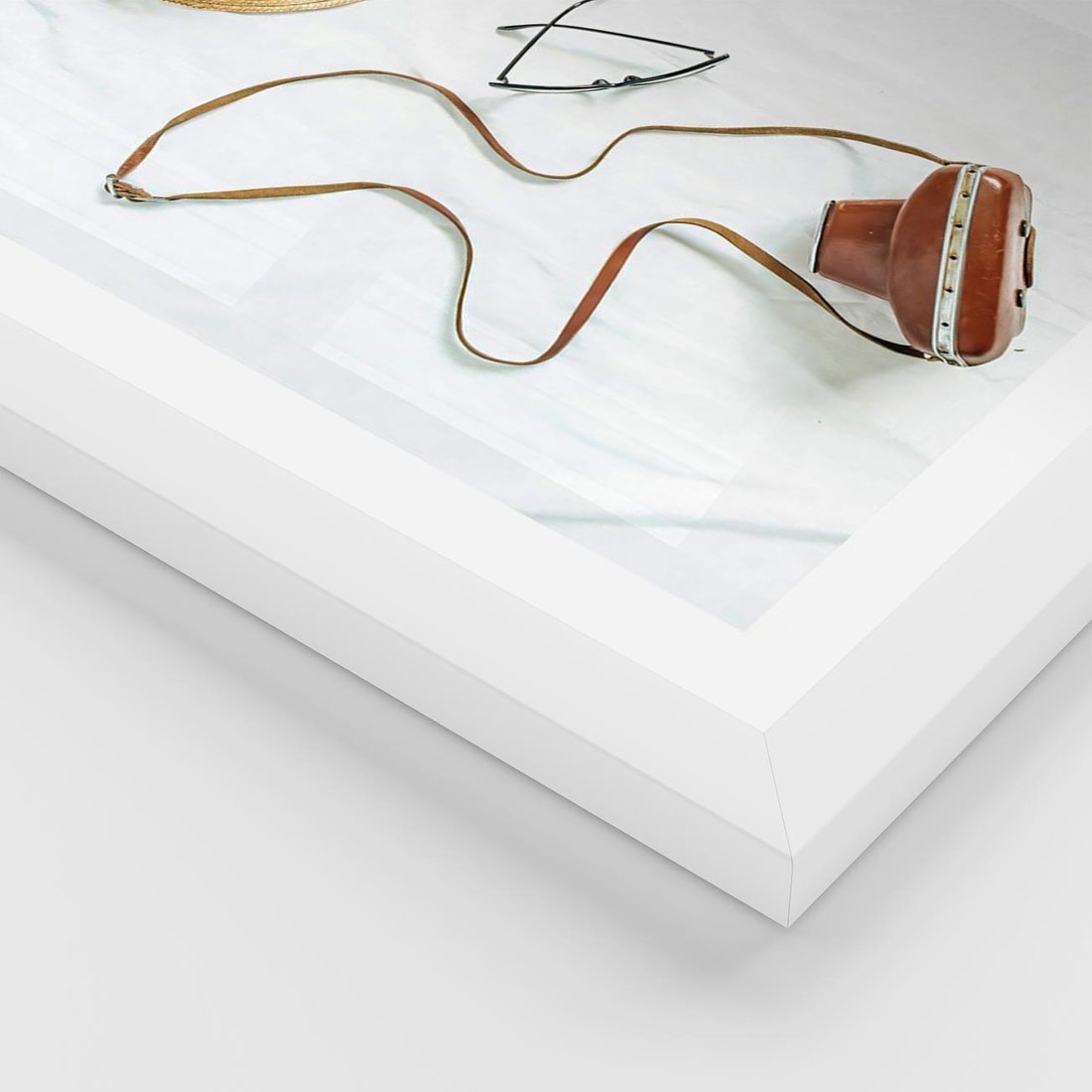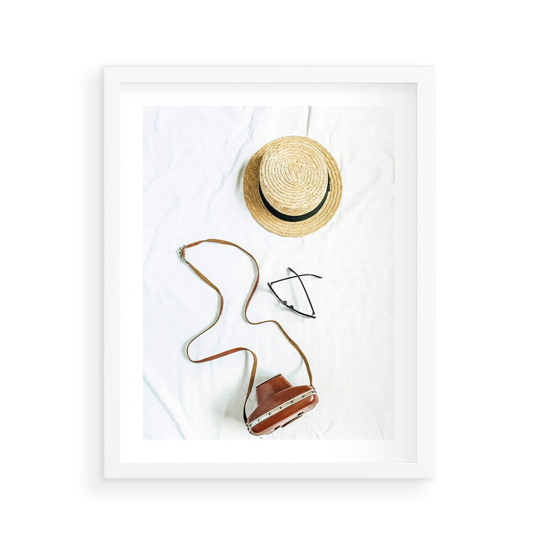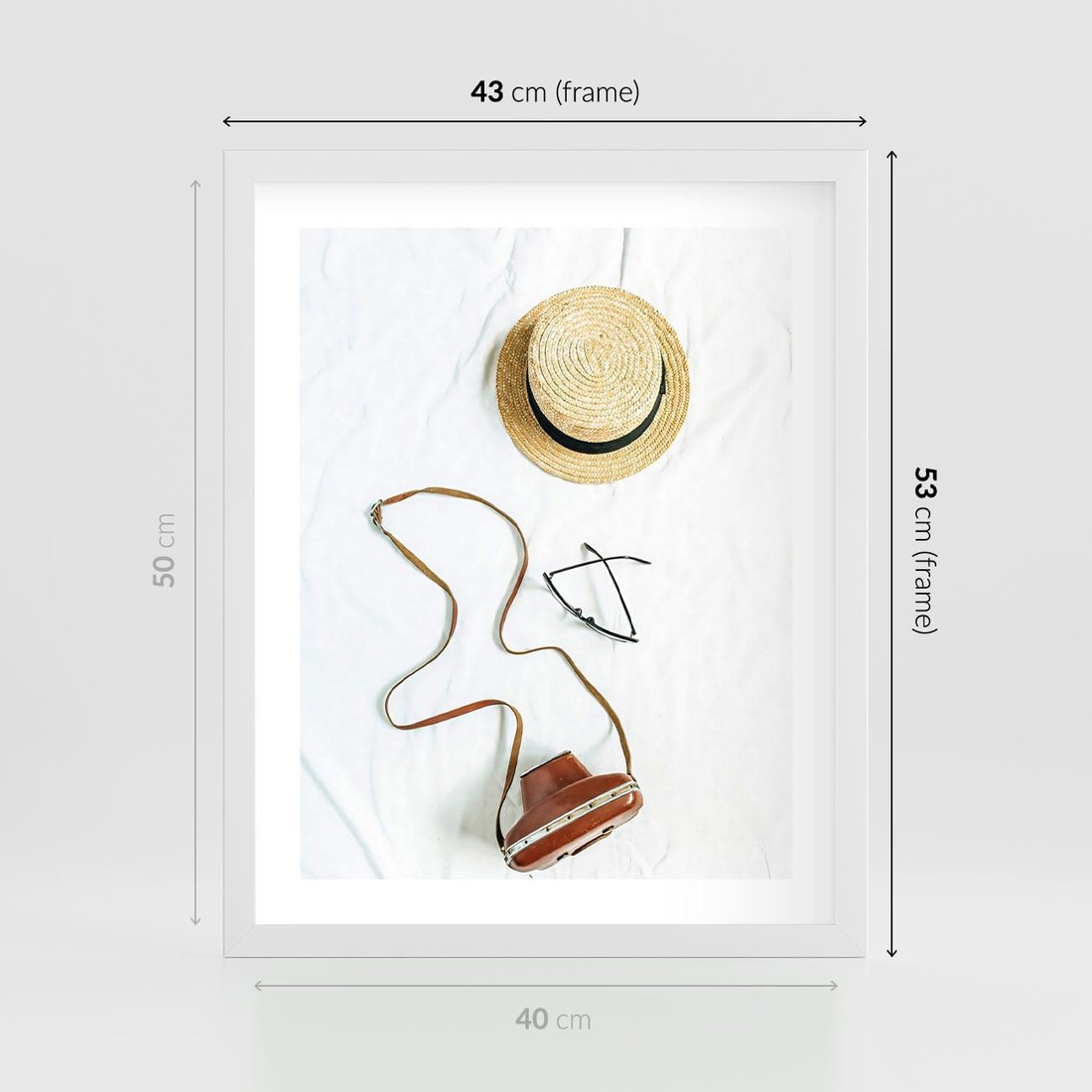 Plakat w ramie 40x50 - Artystyczna Dusza - boho kompozycja, kapelusz słomkowy - rama biała