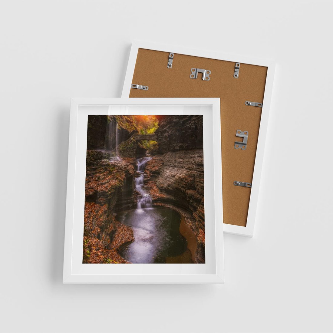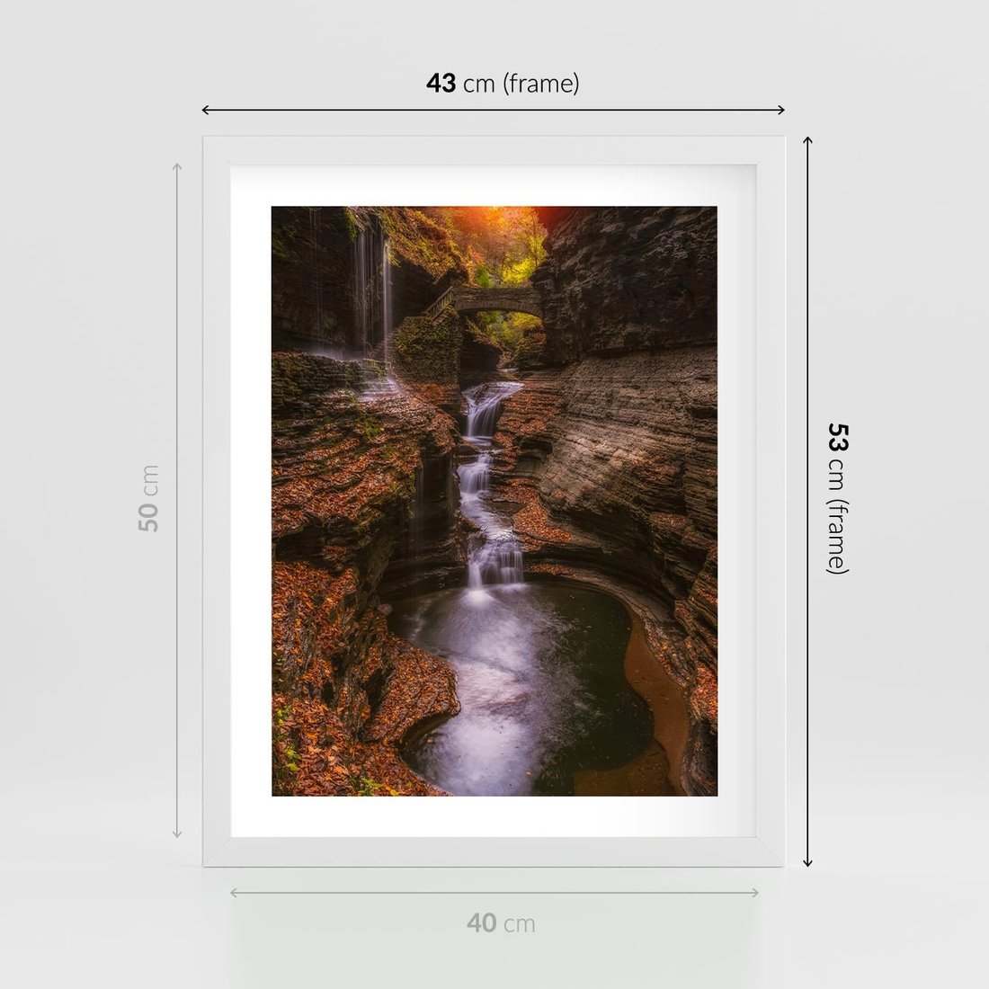 Plakat w ramie 40x50 - Barwna Harmonia - strumień, las - rama biała
