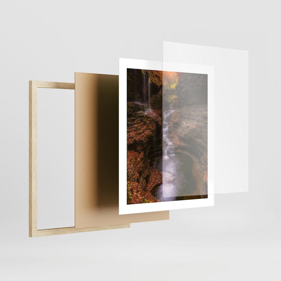 Plakat w ramie 40x50 - Barwna Harmonia - strumień, las - rama drewno