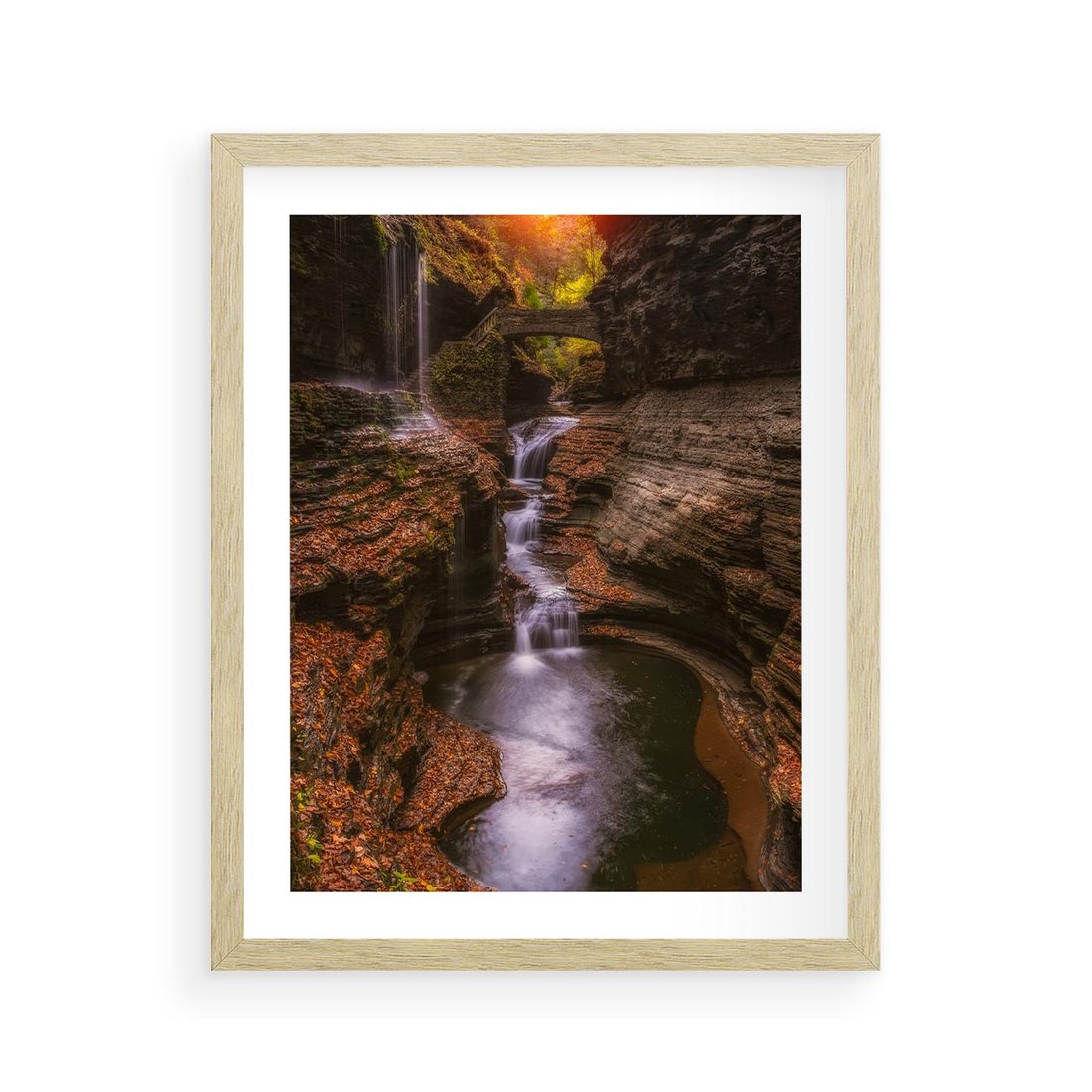 Ten uroczy obraz strumienia płynącego przez jesienny las wprowadzi do Twojego wnętrza barwną harmonię natury. Poczuj spokój i magiczną atmosferę jesieni. Dodaj przytulności i naturalnego piękna do swojego wnętrza.