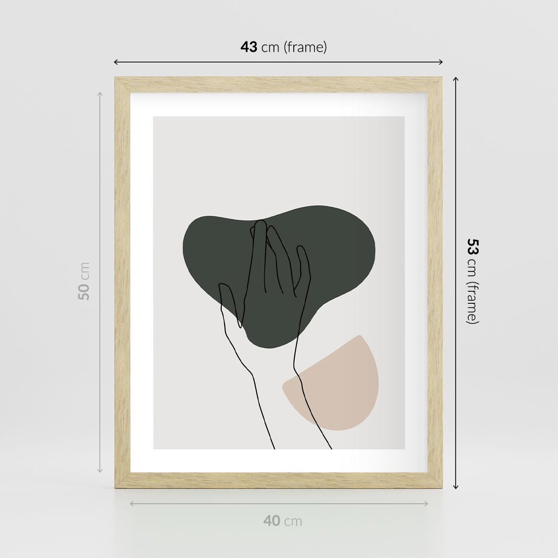 Plakat w ramie 40x50 - Bezczasowe Echo - szkic jedną linią, one line - rama drewno
