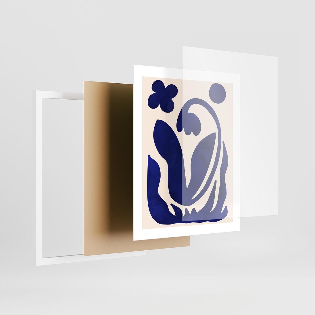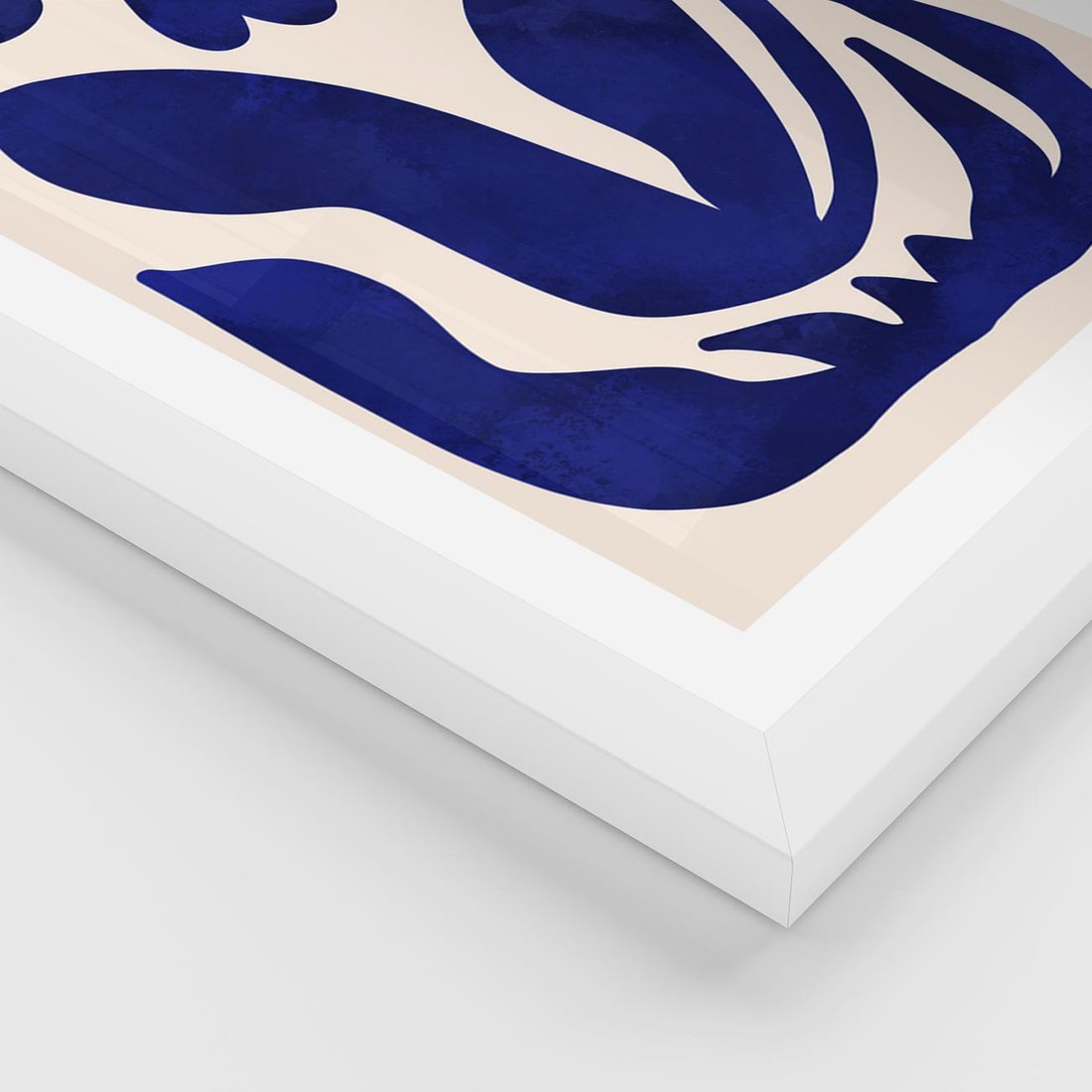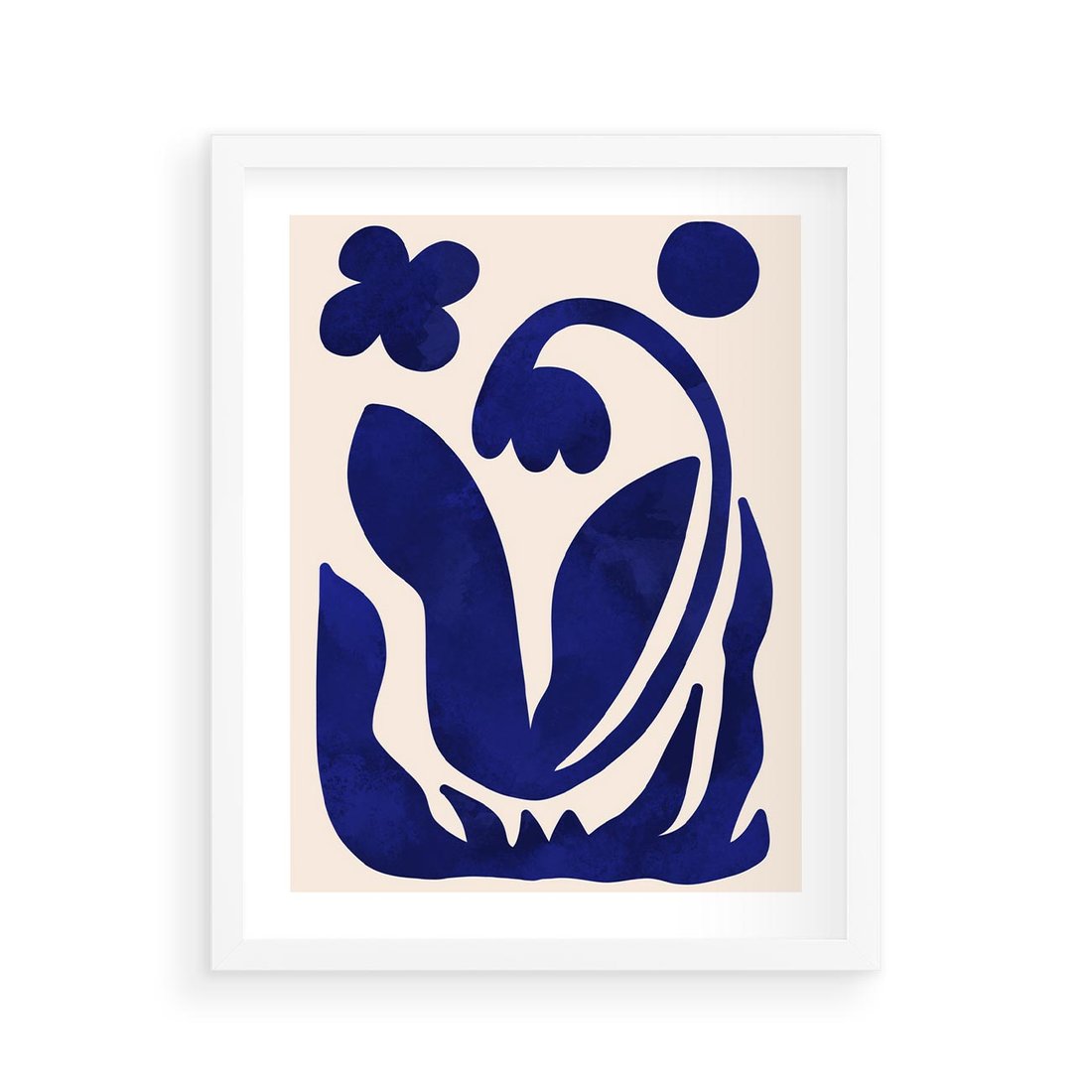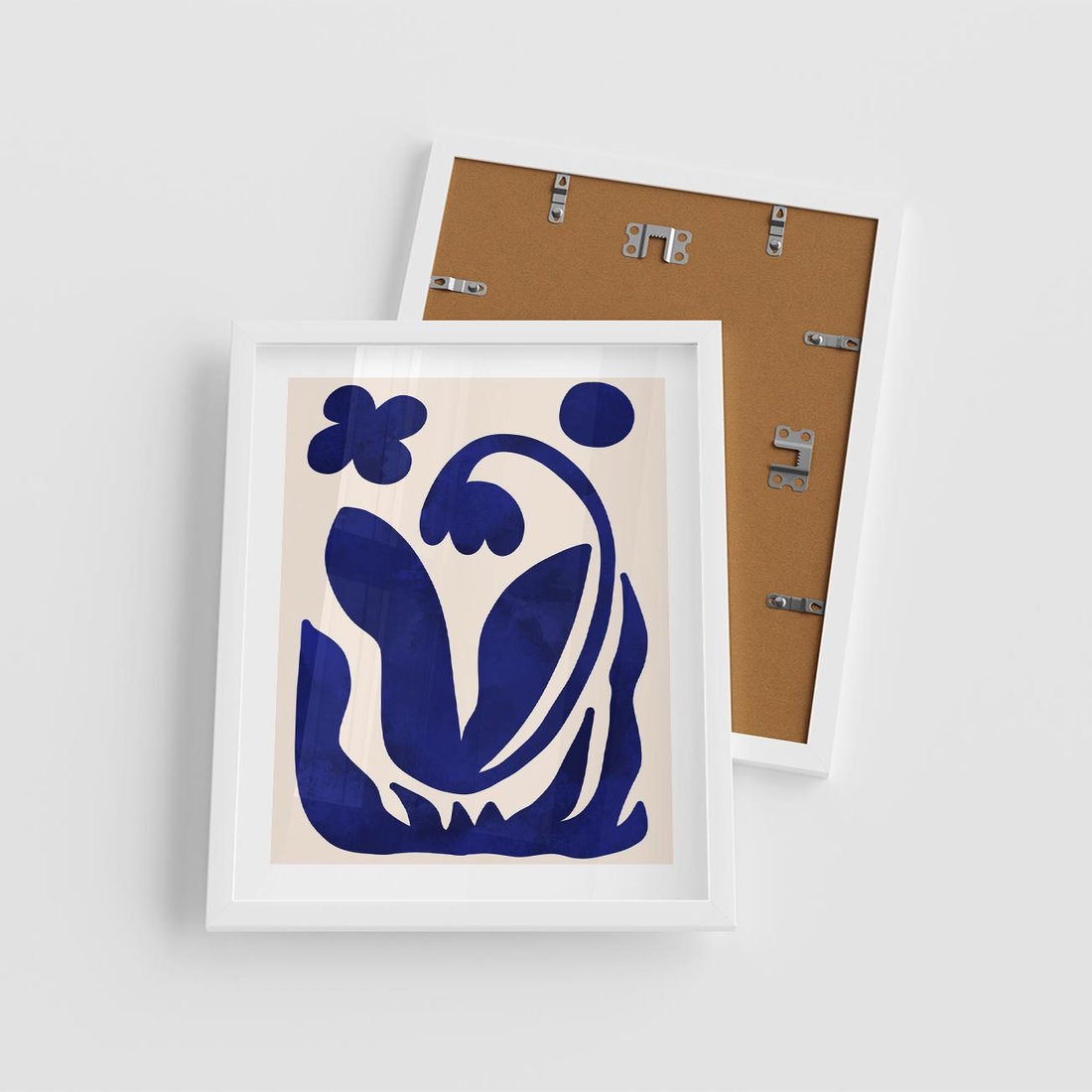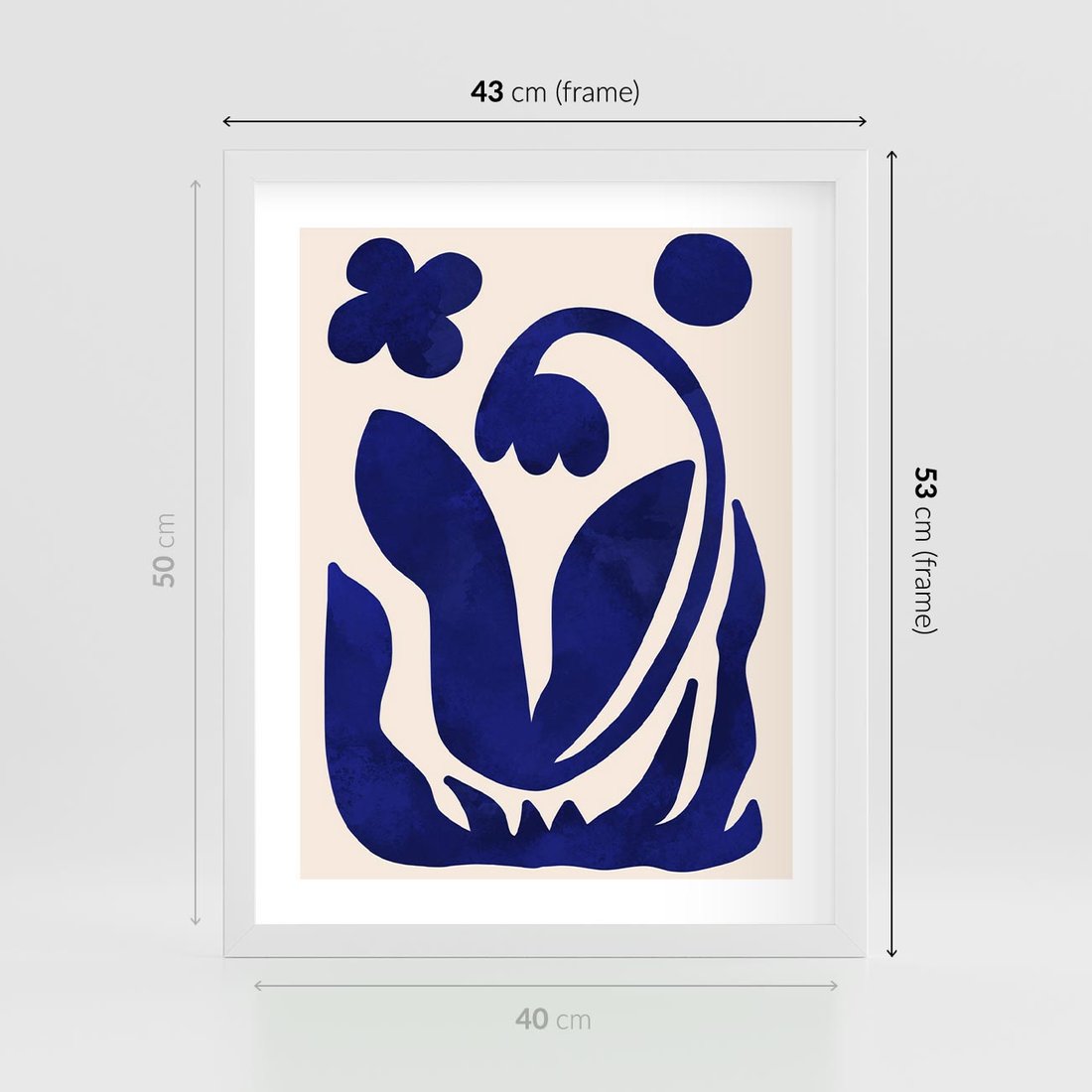 Plakat w ramie 40x50 - Bezgraniczne Echa Serca - abstrakcyjny obraz plakat, dziwne niebieskie kształty przypominają kwiat - rama biała