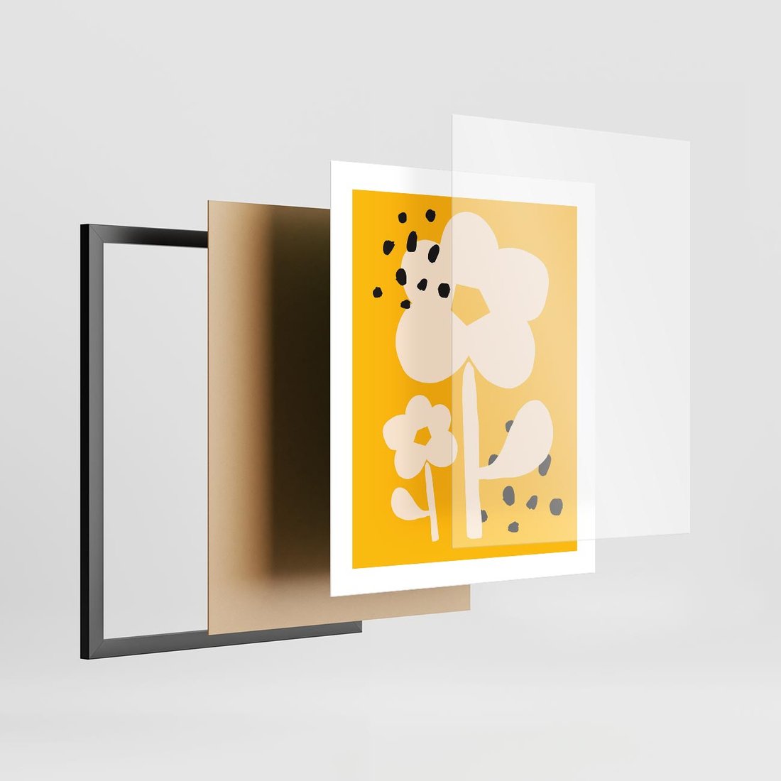 Ten abstrakcyjny plakat przedstawia kwiat w dynamicznym stylu, na tle intensywnego żółtego koloru z czarnymi plamkami. Sztuka ta emanuje energią i ekspresją, tworząc wyjątkową przestrzeń wizualną, która może ożywić każde wnętrze.