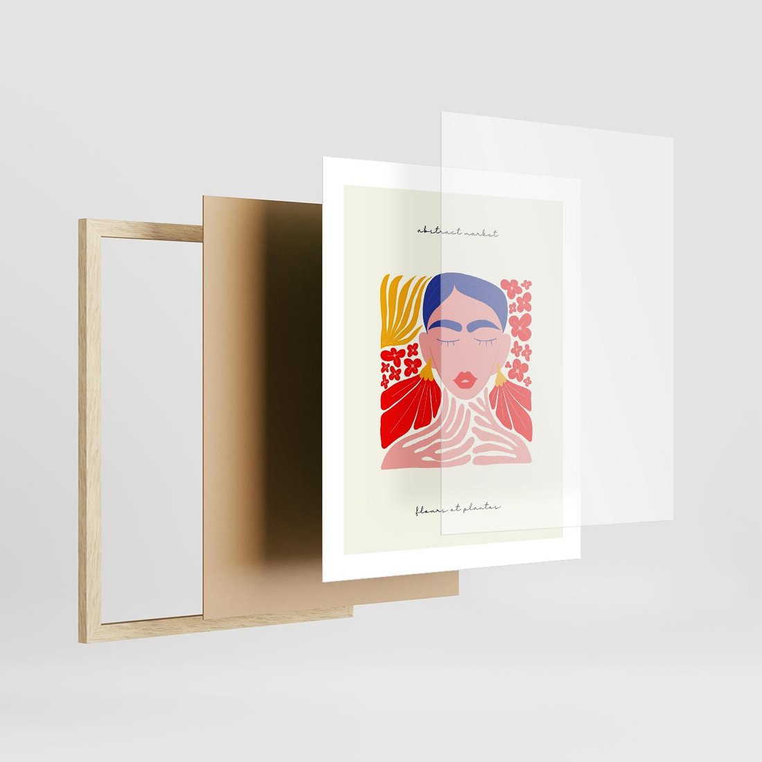 Ta sztuka abstrakcyjna ukazuje kobiecą siłę w intensywnych barwach, zrównoważoną delikatną typografią. Kompozycja oddaje moc i subtelność kobiecej natury, tworząc harmonijną opowieść o pięknie.