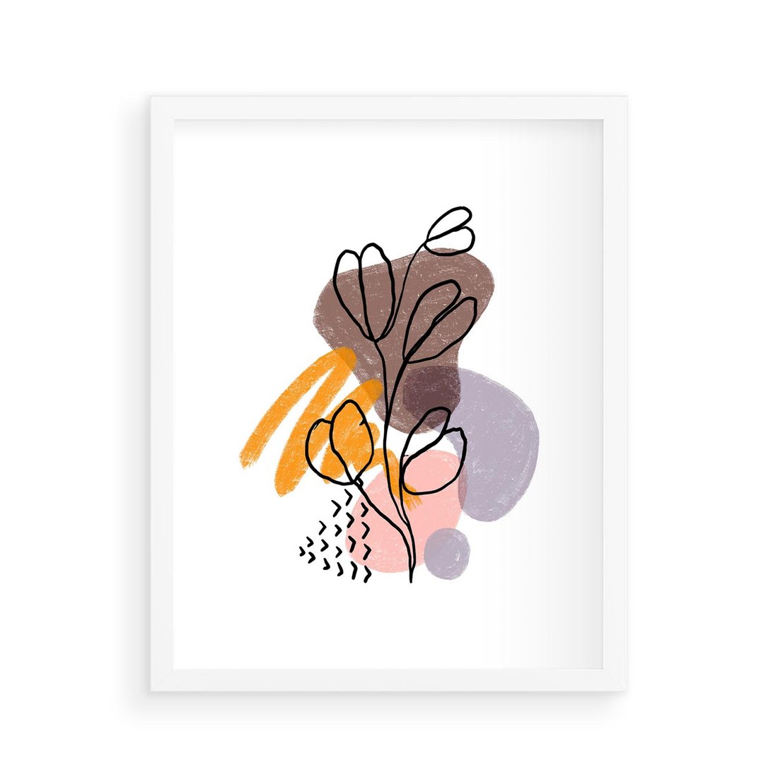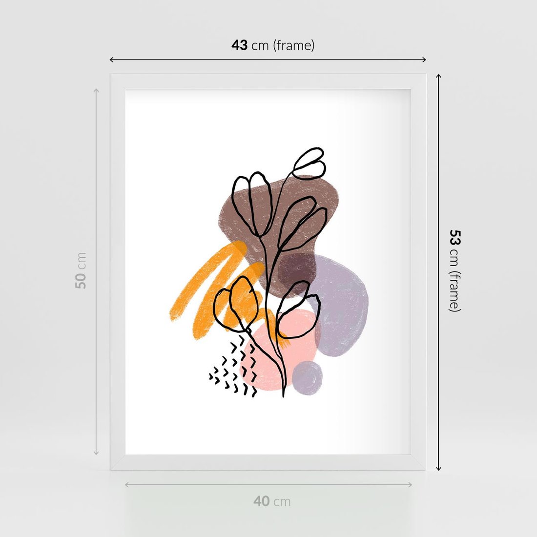 Plakat w ramie 40x50 - Bezgraniczne Widzenia - abstrakcyjna sztuka, liść gałązka - rama biała