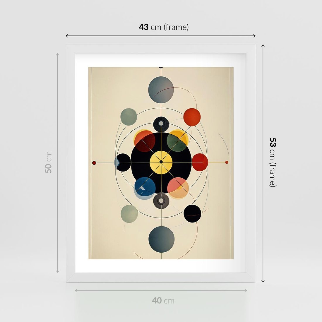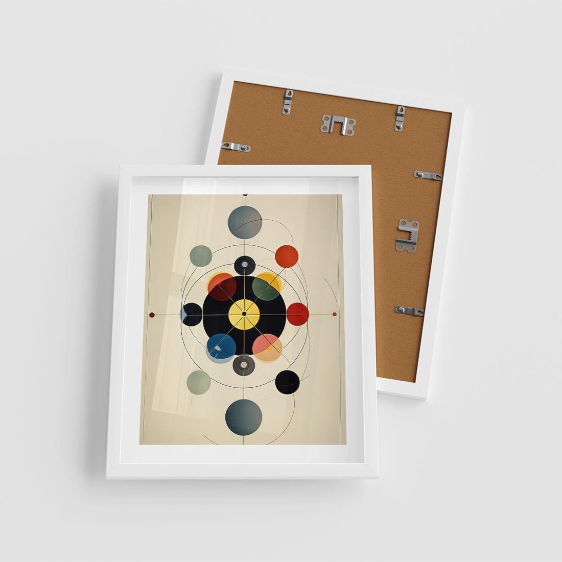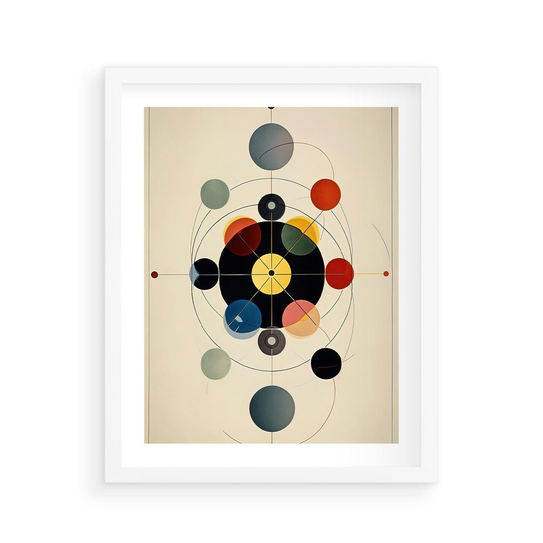 Plakat w ramie 40x50 - Bezgraniczny Taniec Światła - abstrakcyjna geometryczna kompozycja, koła linie - rama biała