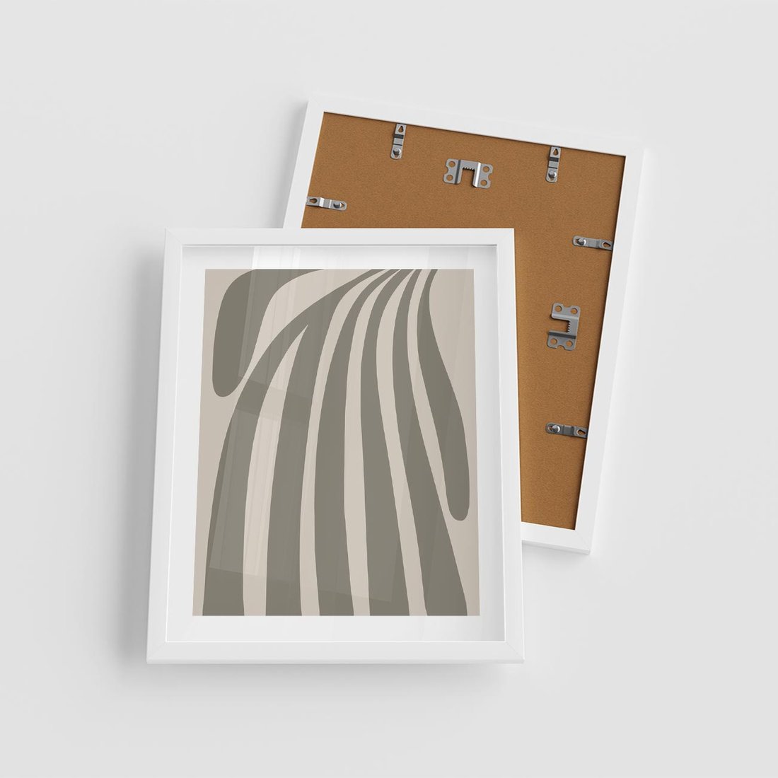 Plakat w ramie 40x50 - Beżowa Delikatność - nowoczesna sztuka, plakat modern - rama biała