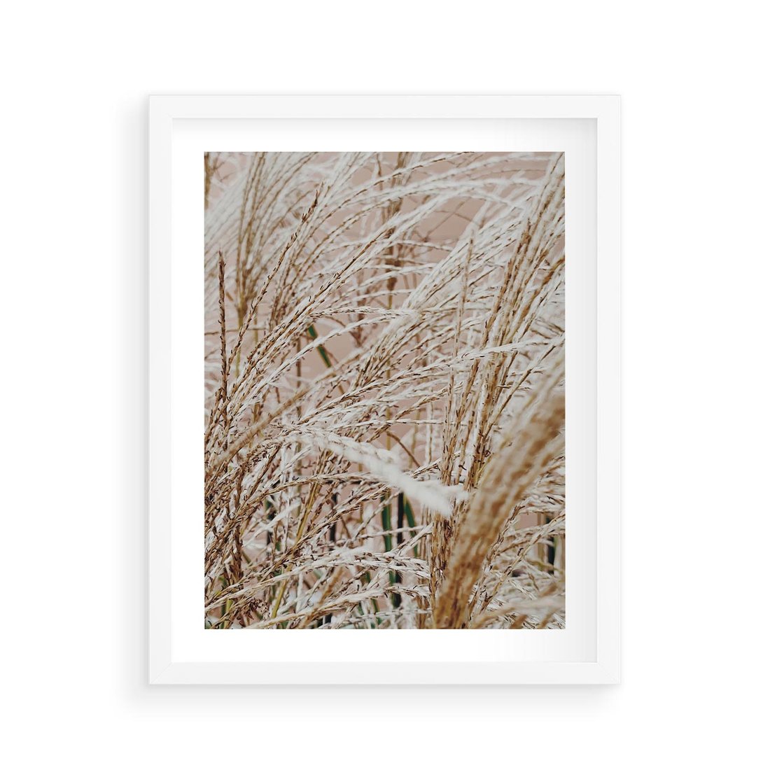 Plakat w ramie 40x50 - Beżowa Trawa - suche trawy, zbliżenie - rama biała