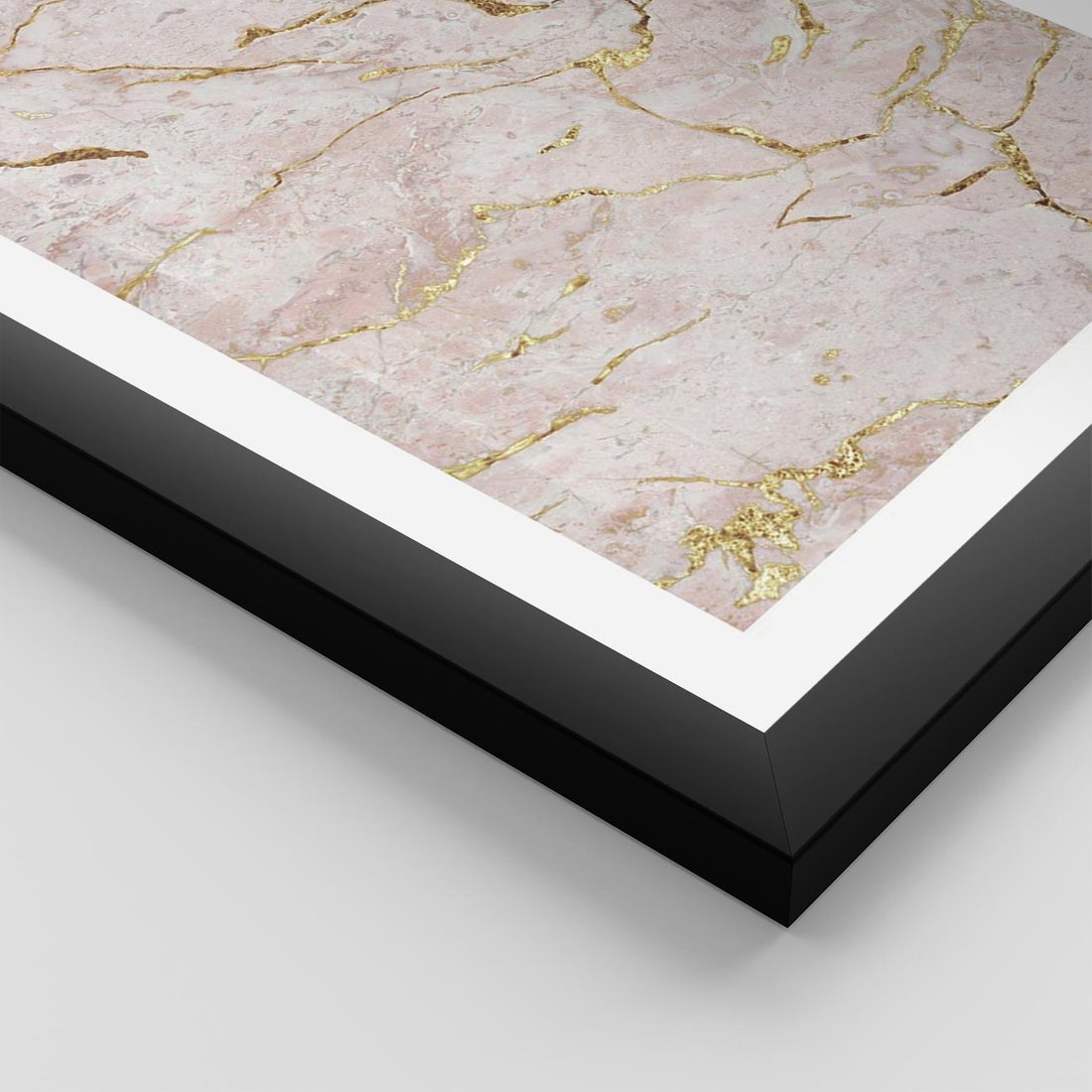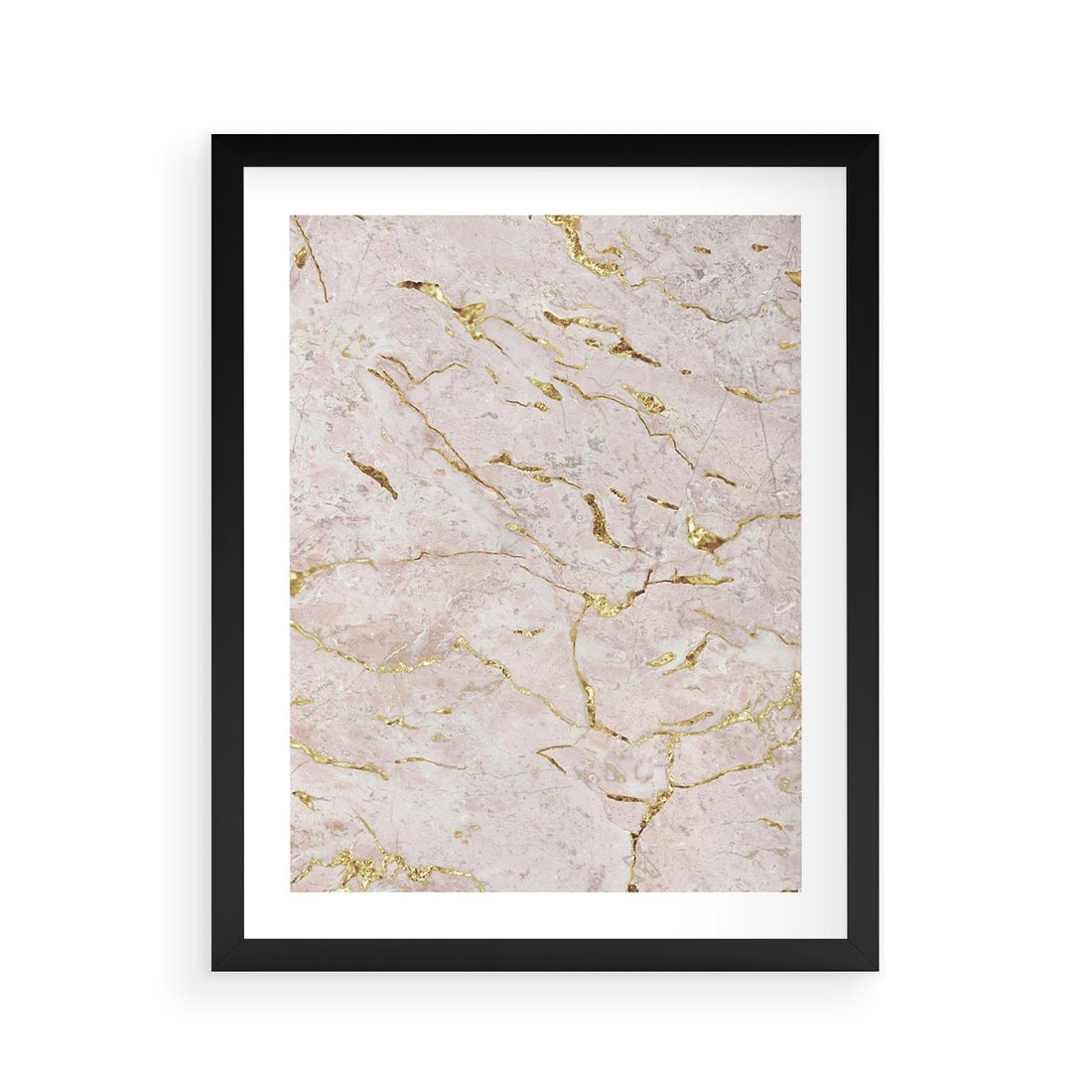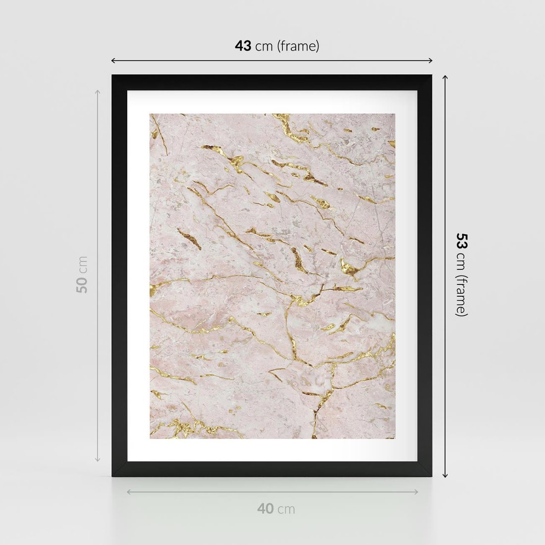 Plakat w ramie 40x50 - Beżowy Marmur i Złoto - marmur, beżowy marmur - rama czarna