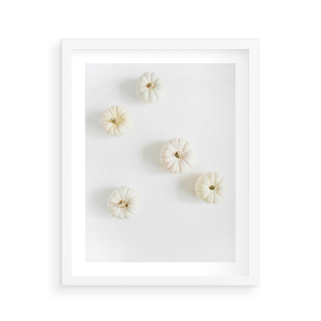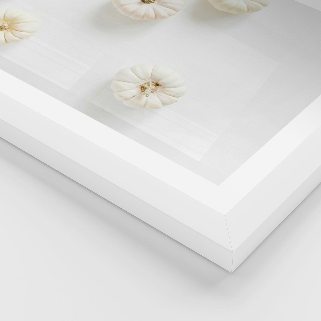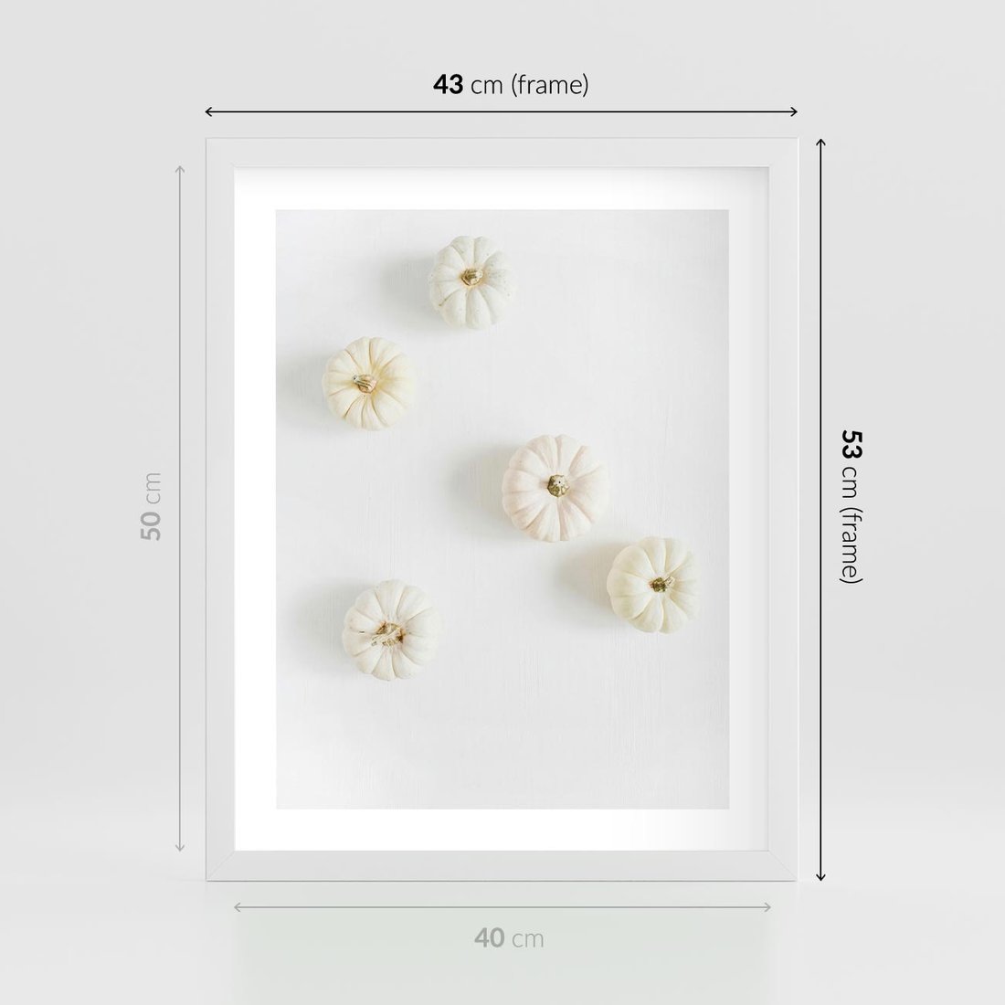 Plakat w ramie 40x50 - Biała Jesień: Dynie na Jasnym Tle - białe dynie, białe tło - rama biała