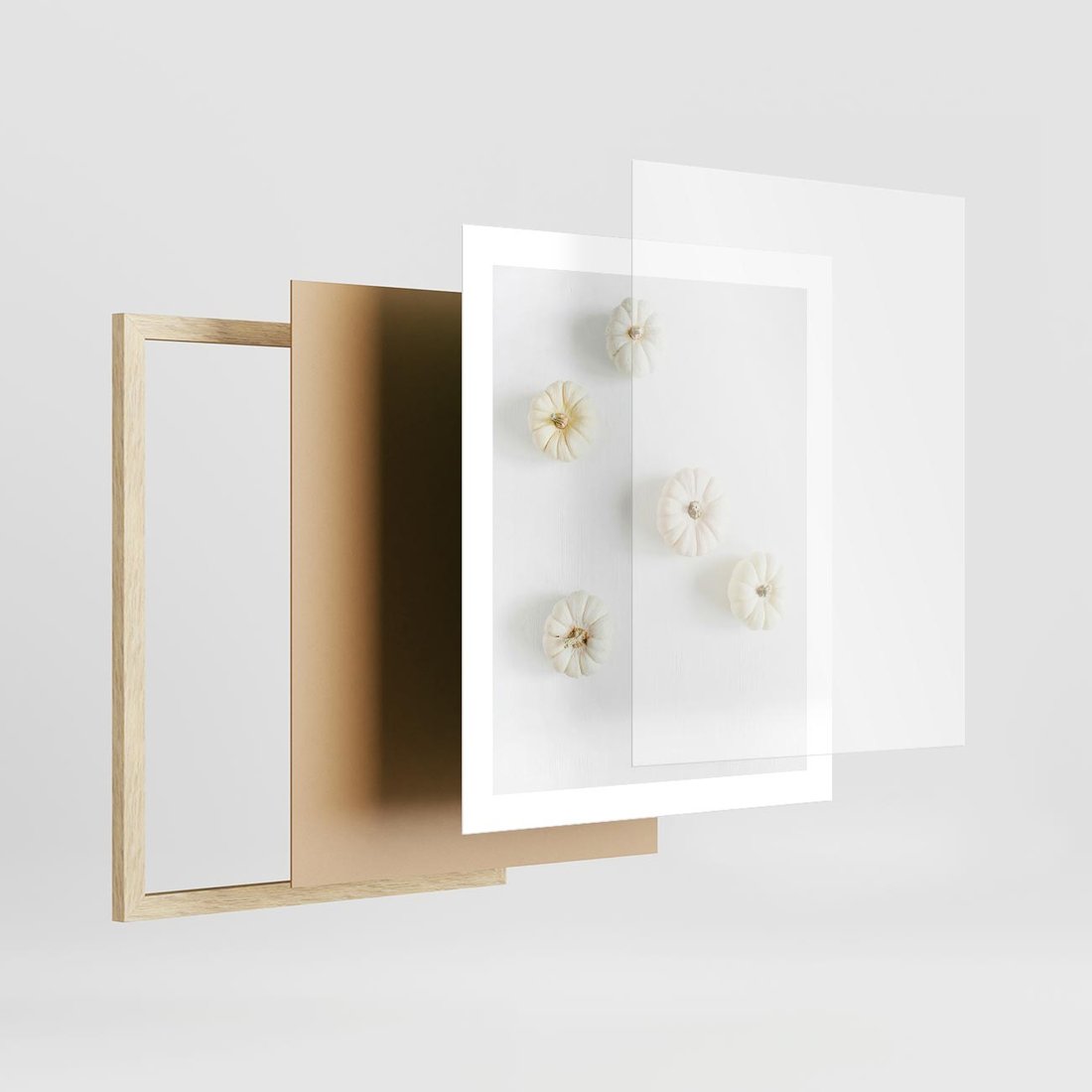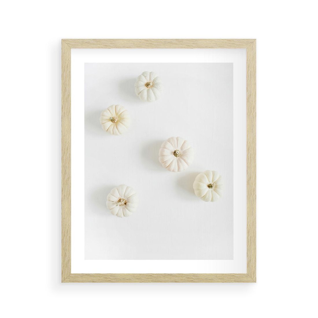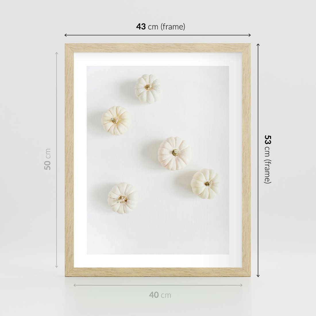 Plakat w ramie 40x50 - Biała Jesień: Dynie na Jasnym Tle - białe dynie, białe tło - rama drewno