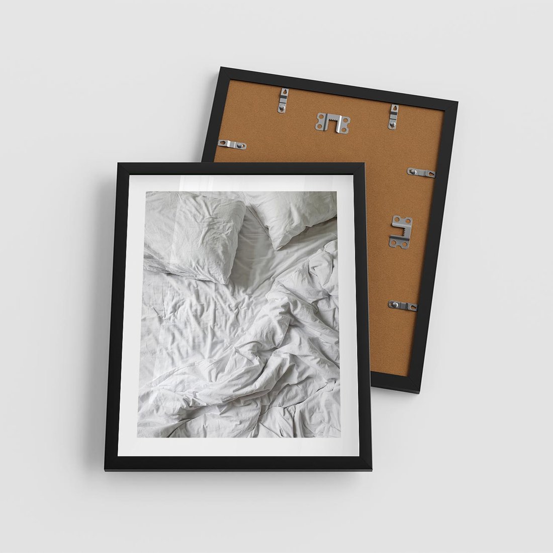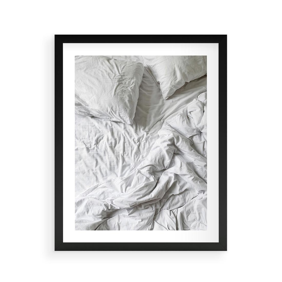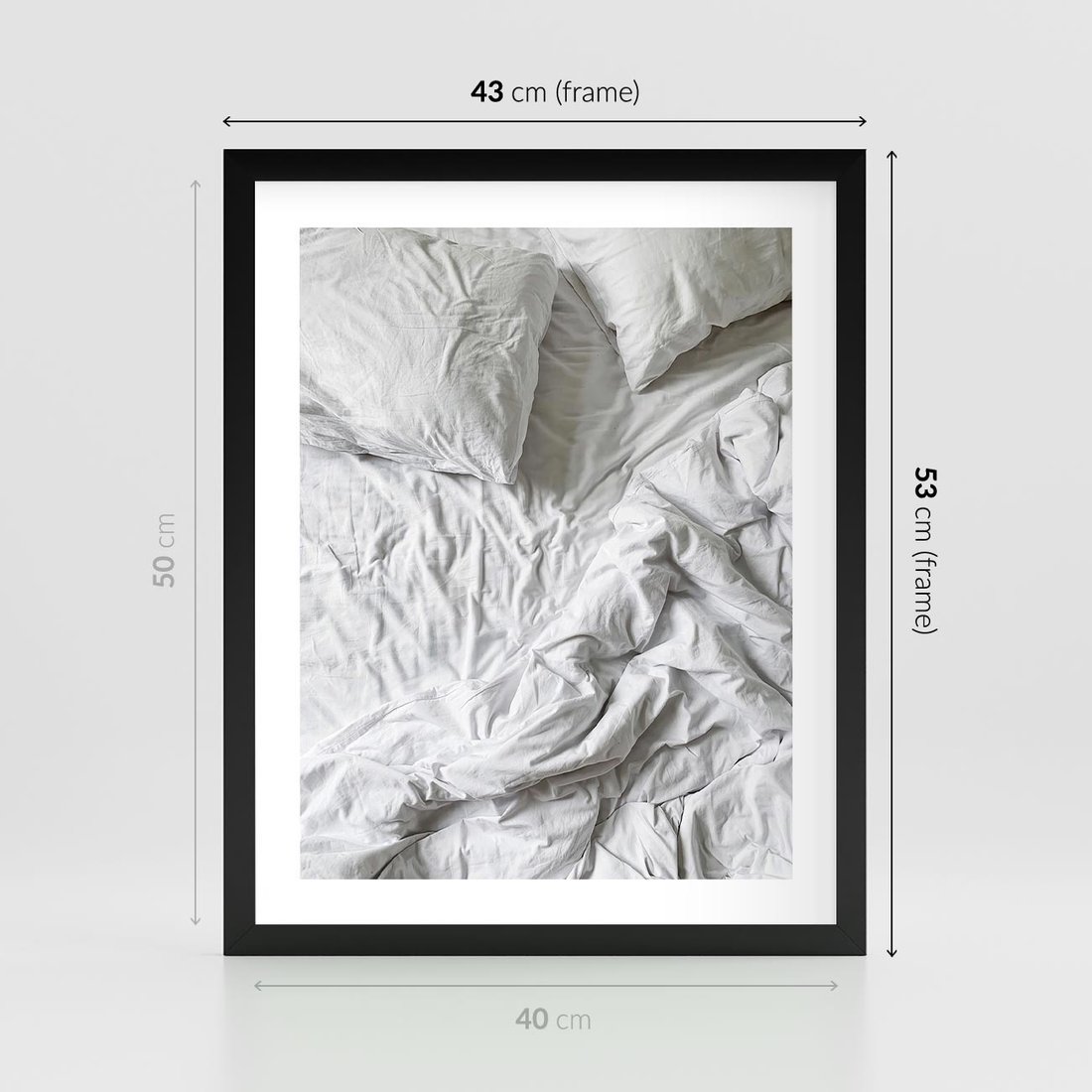 - Plakat w ramie 40x50 - Biała Pościel na Łóżku