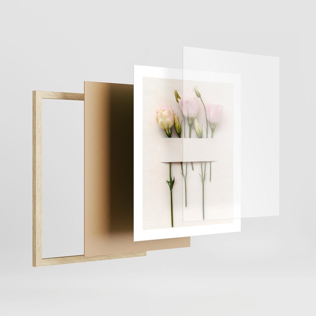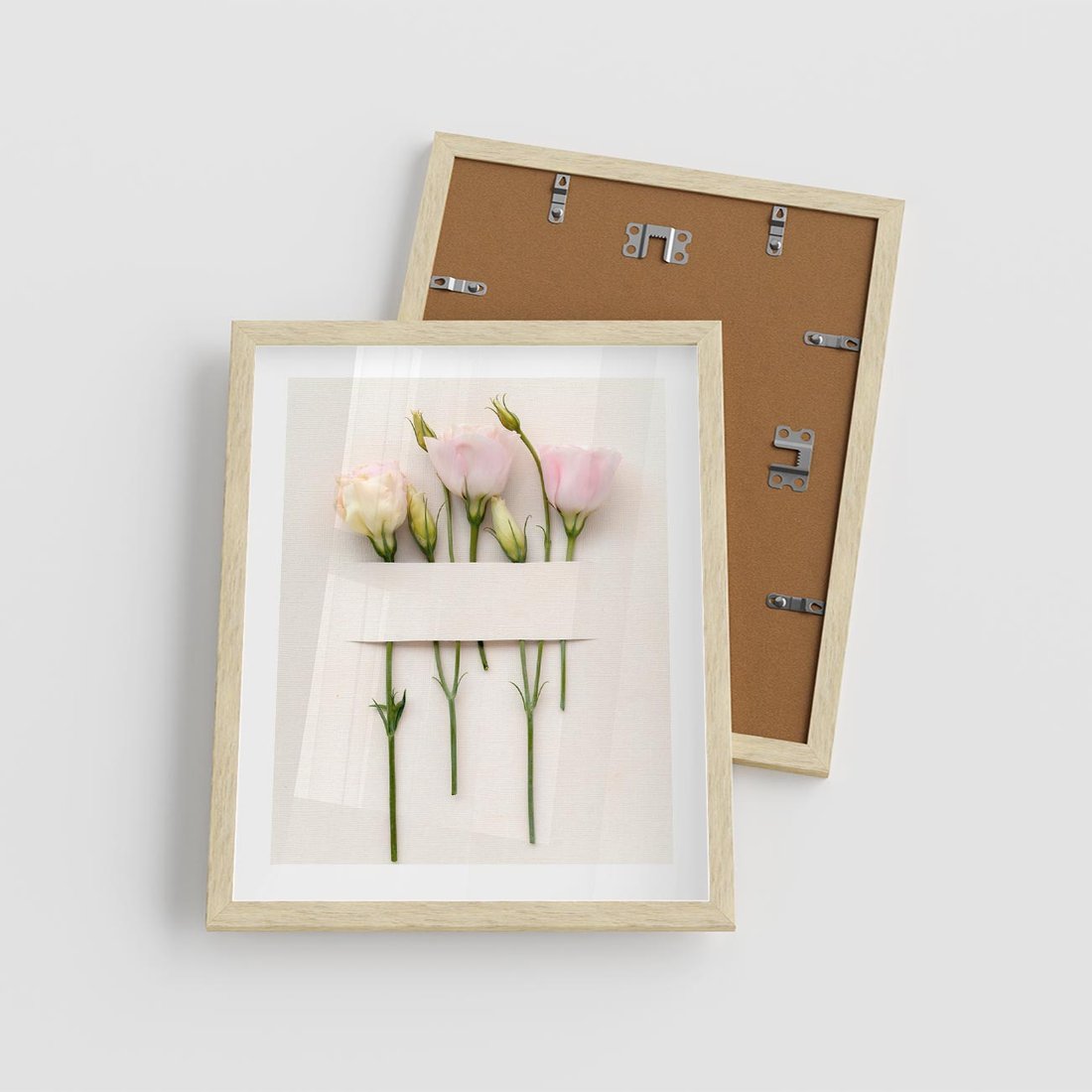 Plakat w ramie 40x50 - Białe kwiatowe uniesienia - białe, kwiaty - rama drewno