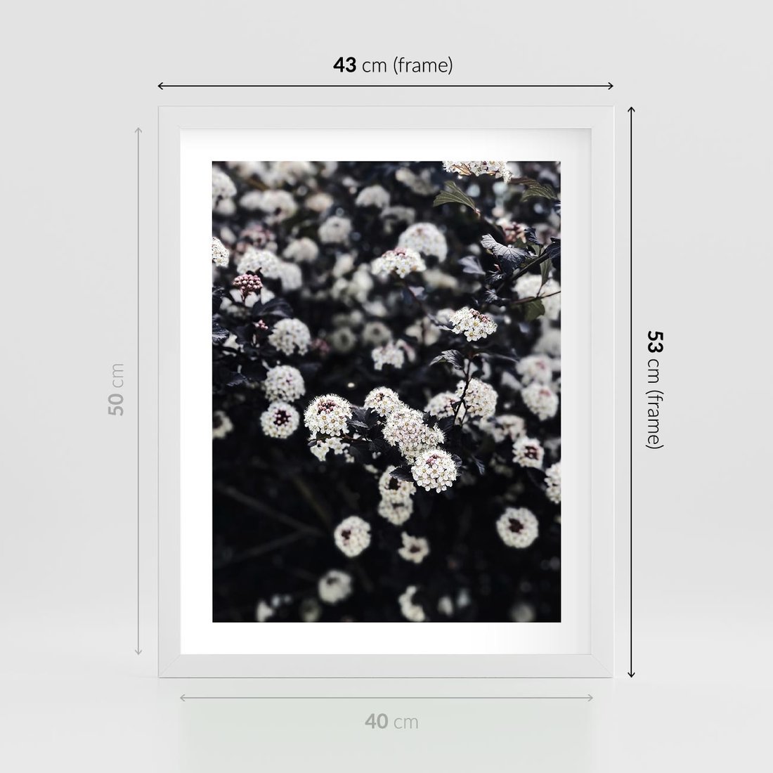 - Plakat w ramie 40x50 - Białe Kwiaty na Kwitnącym Krzewie