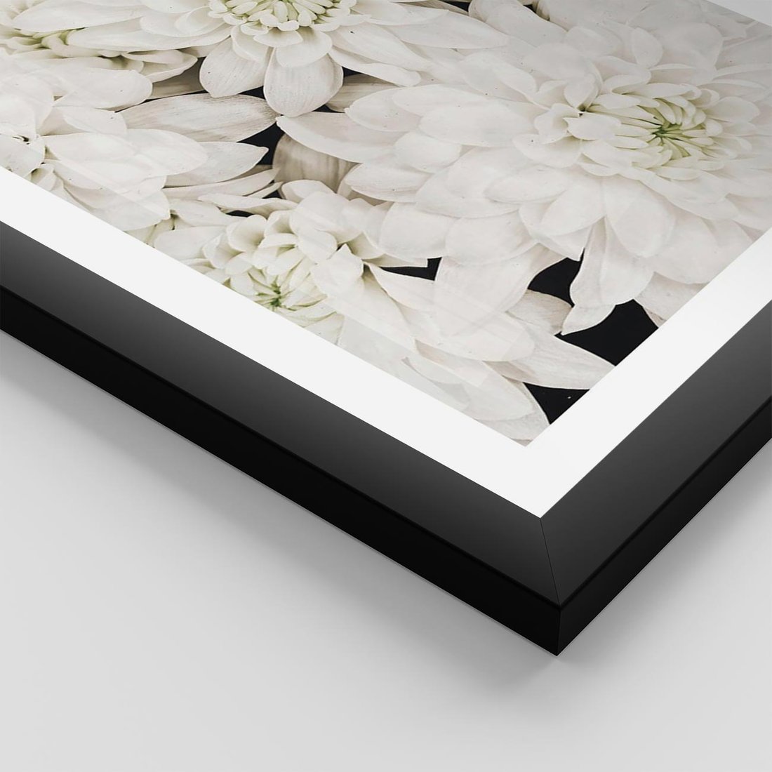 Plakat w ramie 40x50 - Białe Kwiaty: Płatki Delikatności - białe kwiaty, zbliżenie - rama czarna