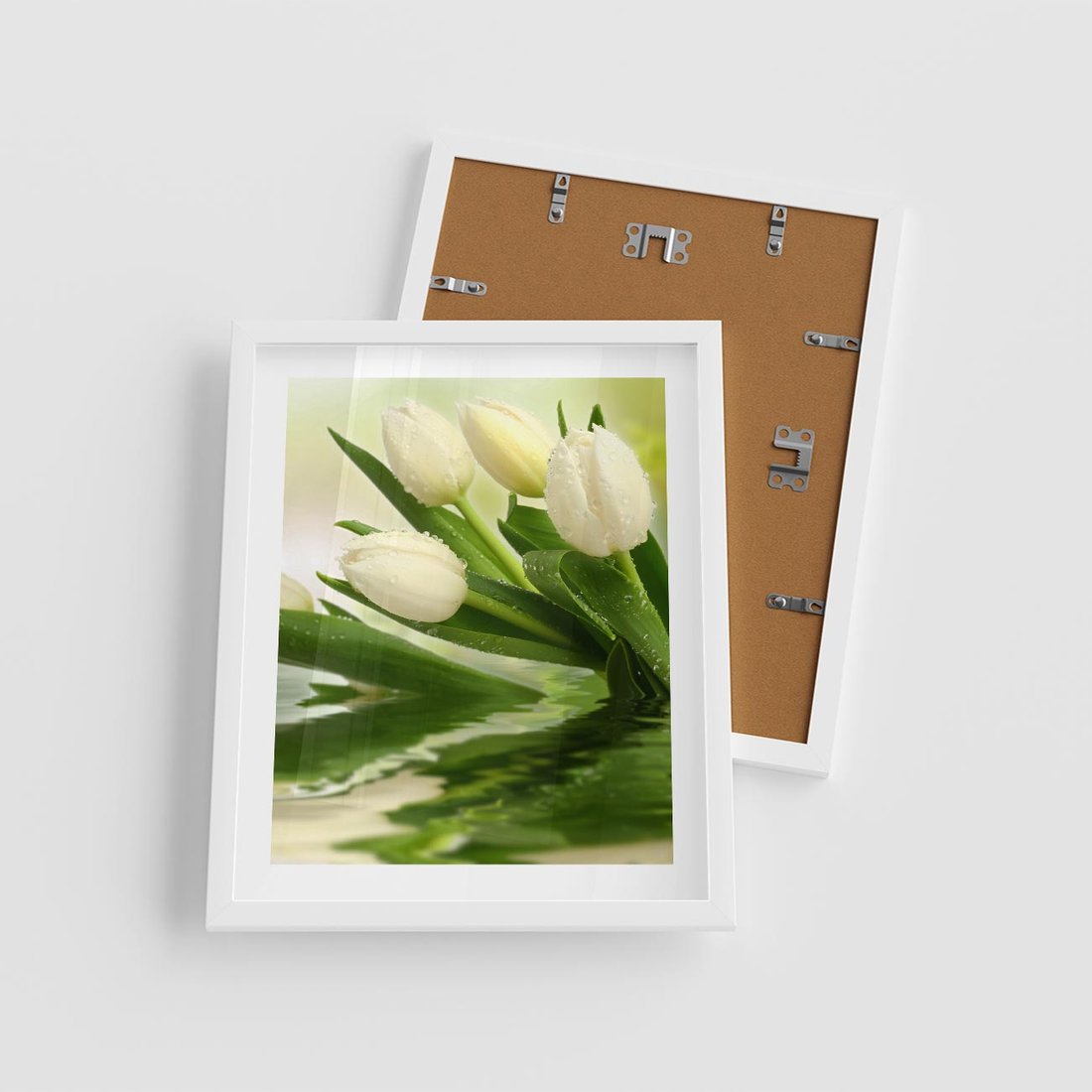 Plakat w ramie 40x50 - Białe Piękno - białe, tulipany - rama biała