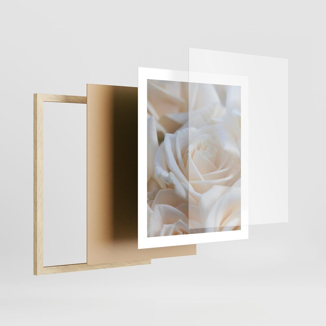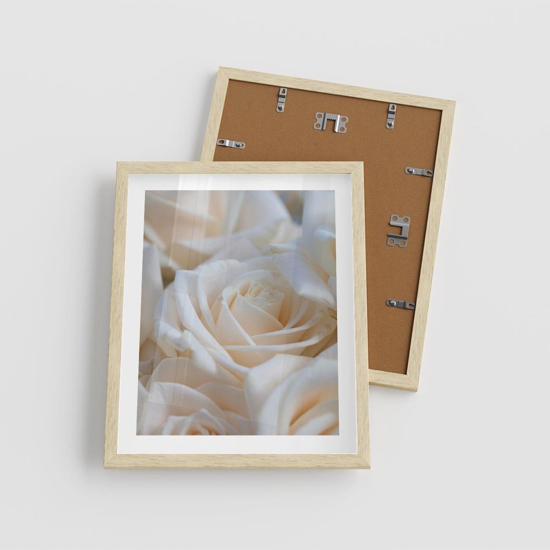 Plakat w ramie 40x50 - Białe róże piękności - białe, róże - rama drewno