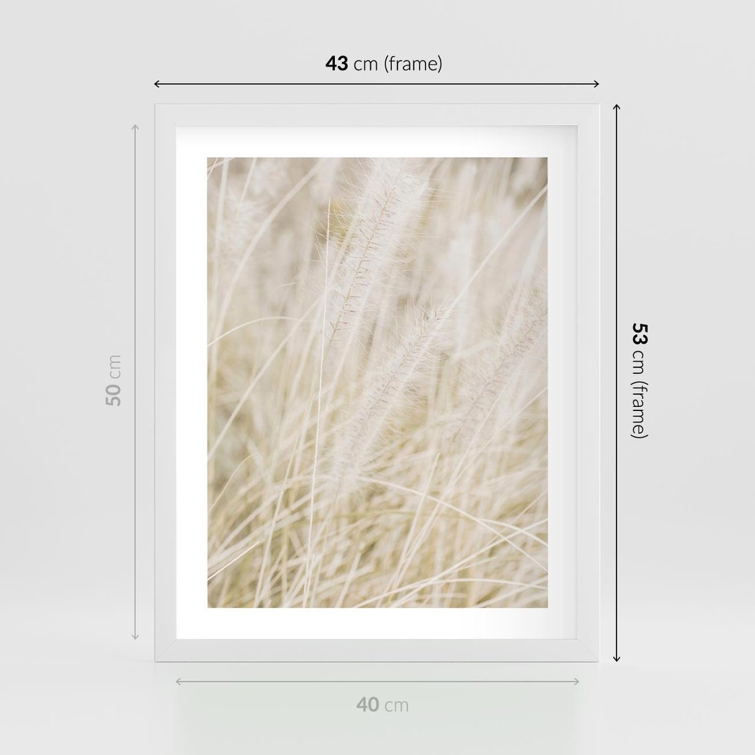 Plakat w ramie 40x50 - Białe Trawy Pampas - suche trawy, białe trawy - rama biała