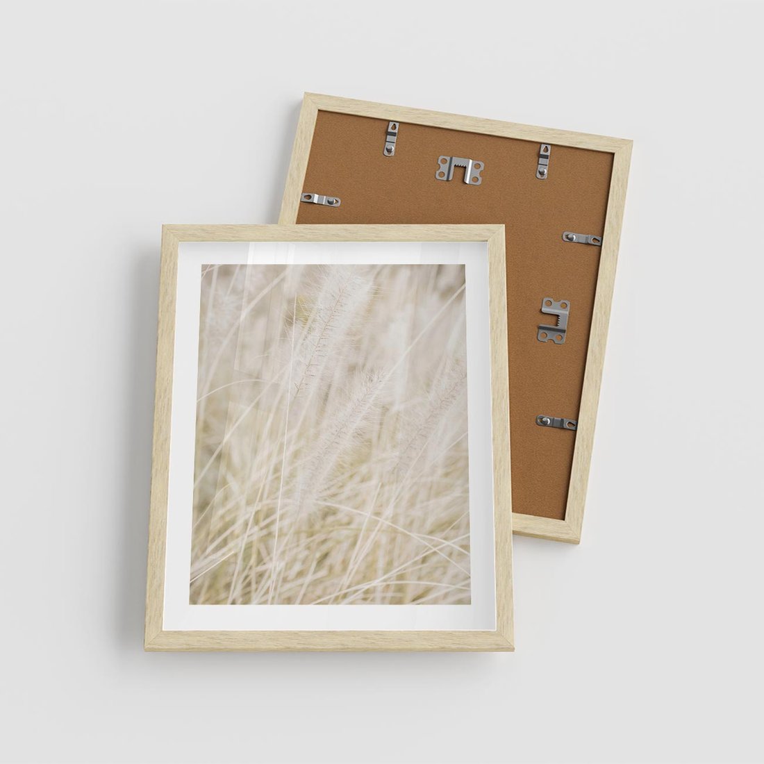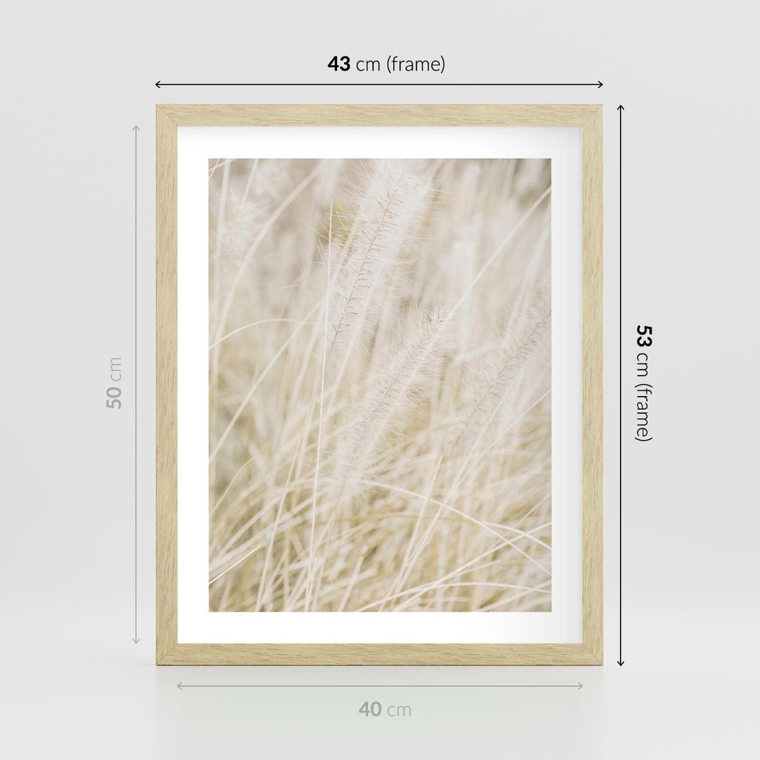 Plakat w ramie 40x50 - Białe Trawy Pampas - suche trawy, białe trawy - rama drewno