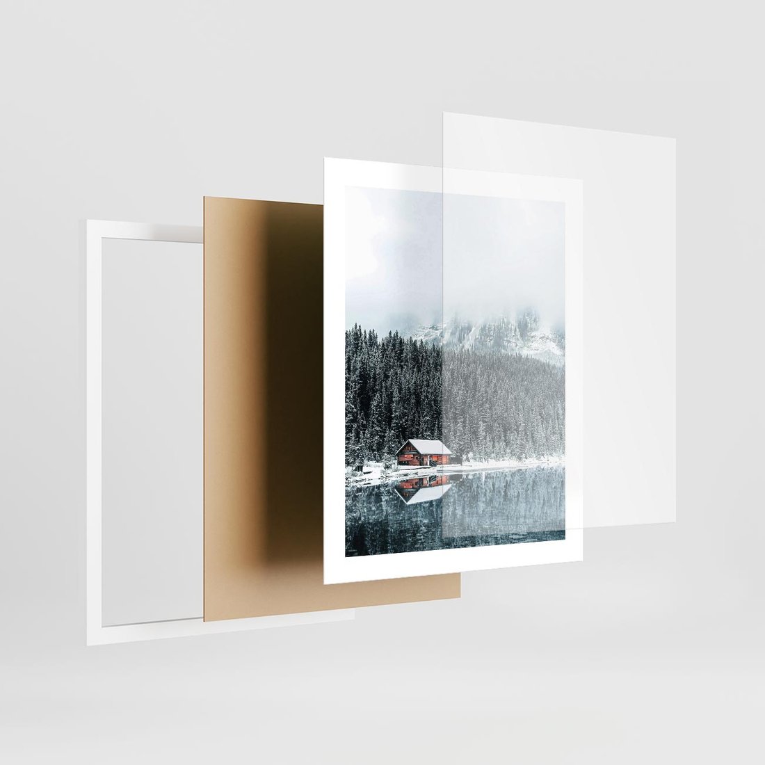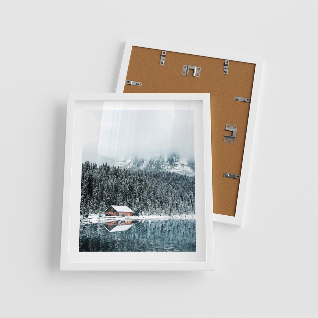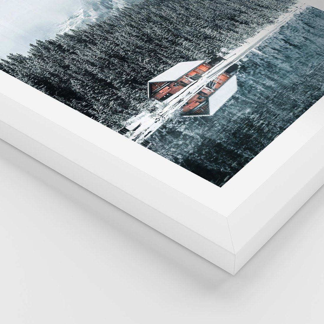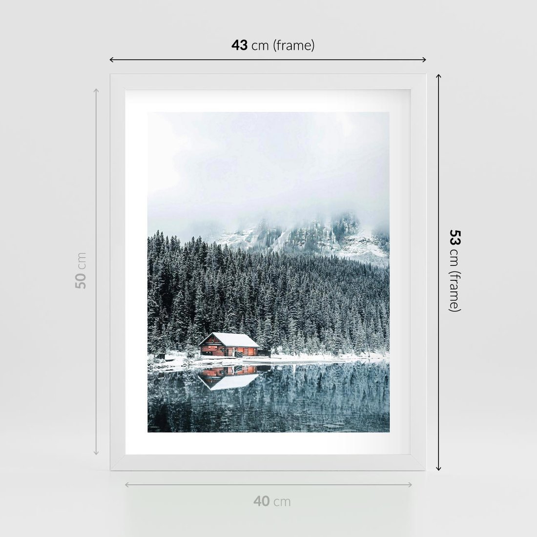 Plakat w ramie 40x50 - Biały Domek - domek w górach, zima - rama biała