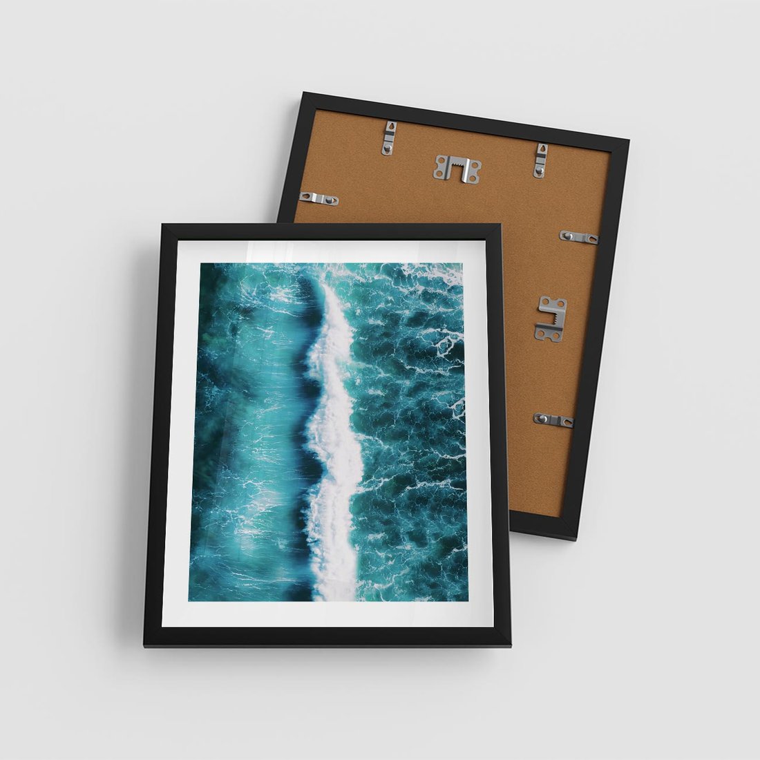 Plakat w ramie 40x50 - Błękitna Siła Oceanu - fale, ocean - rama czarna