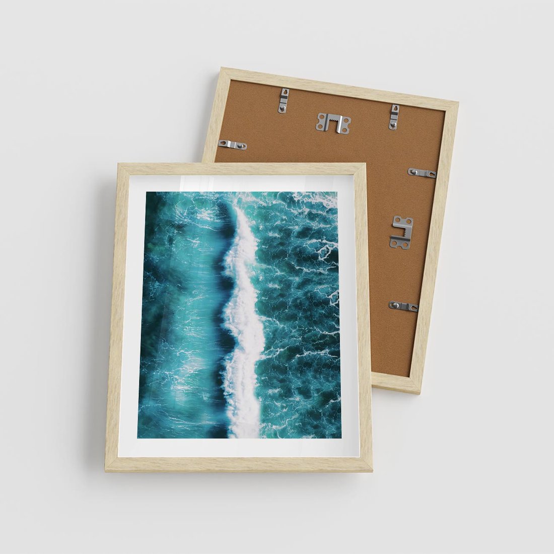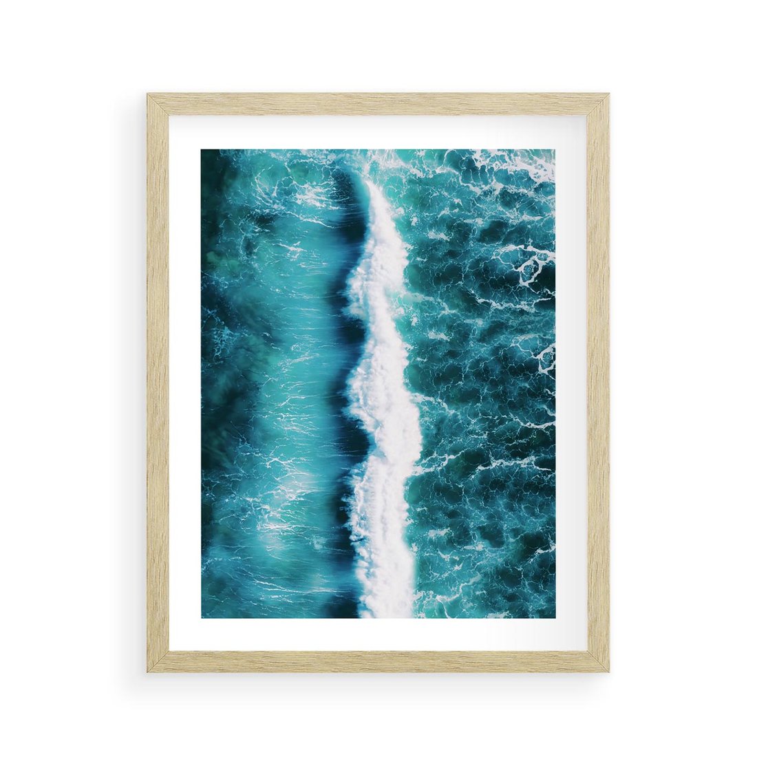 Plakat w ramie 40x50 - Błękitna Siła Oceanu - fale, ocean - rama drewno