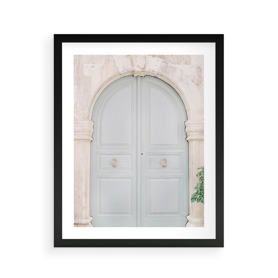 Plakat w ramie 40x50 - Błękitne Drzwi Kamienicy: Urok Historii - stare piękne drzwi do kamienicy, błękitne drzwi - rama czarna