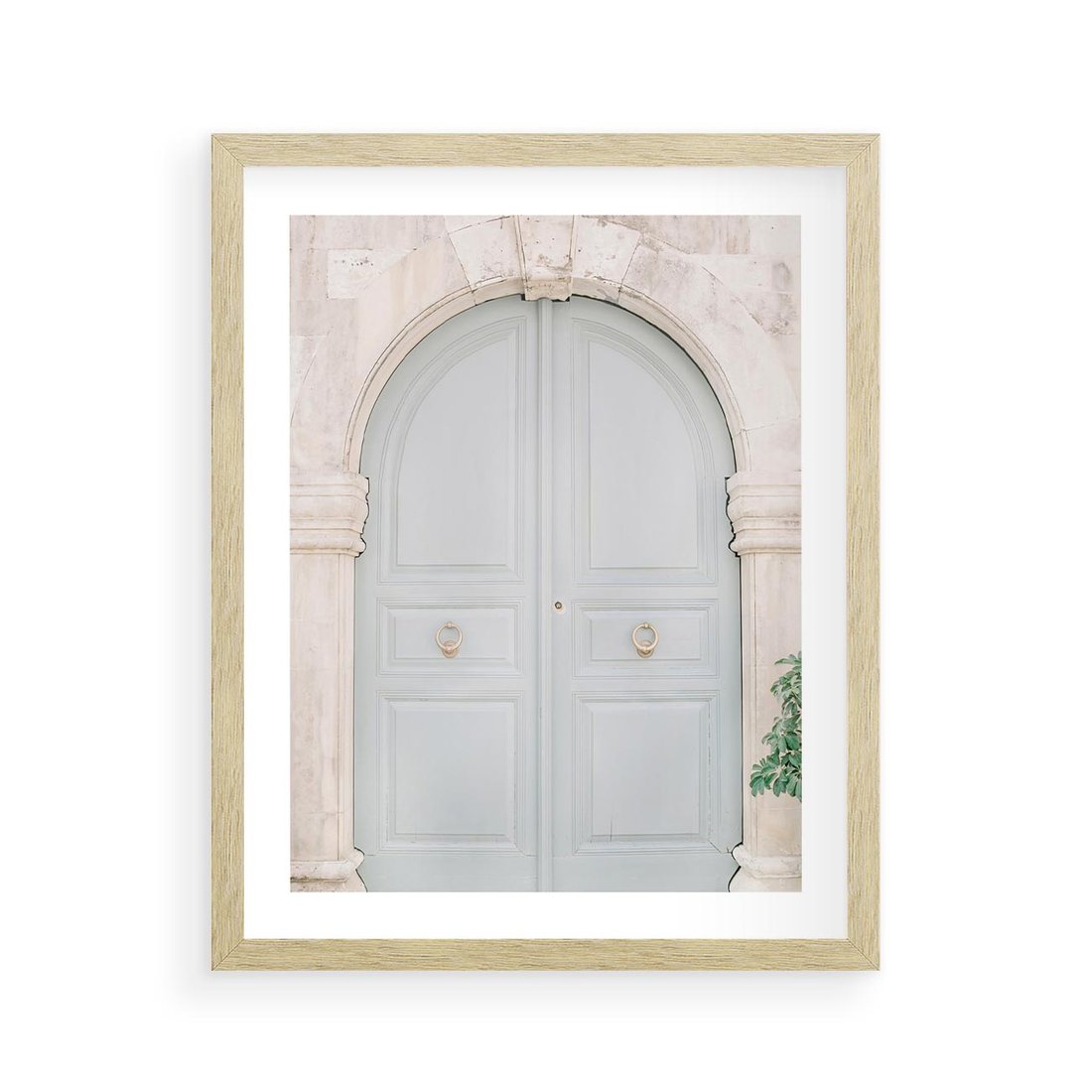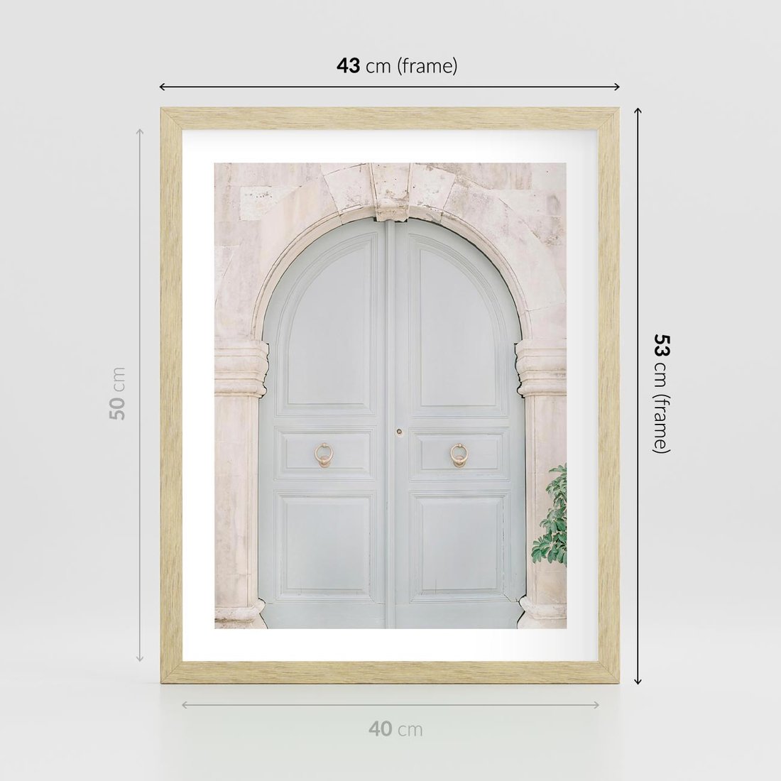 Plakat w ramie 40x50 - Błękitne Drzwi Kamienicy: Urok Historii - stare piękne drzwi do kamienicy, błękitne drzwi - rama drewno
