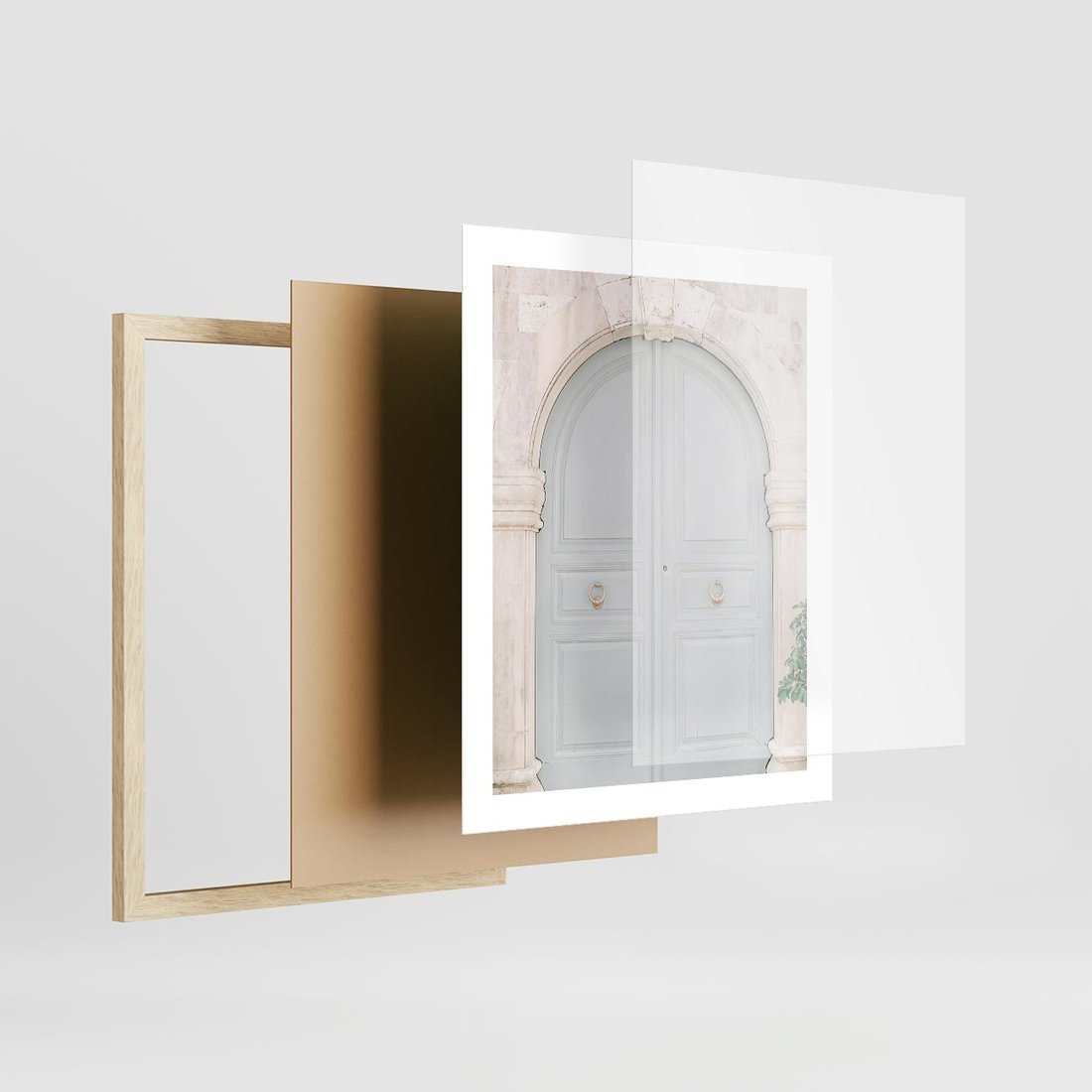 - Plakat w ramie 40x50 - Błękitne Drzwi Kamienicy: Urok Historii