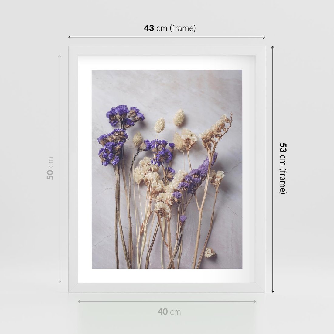 Plakat w ramie 40x50 - Błękitno-Biała Harmonia - suszone kwiaty, błekitne - rama biała