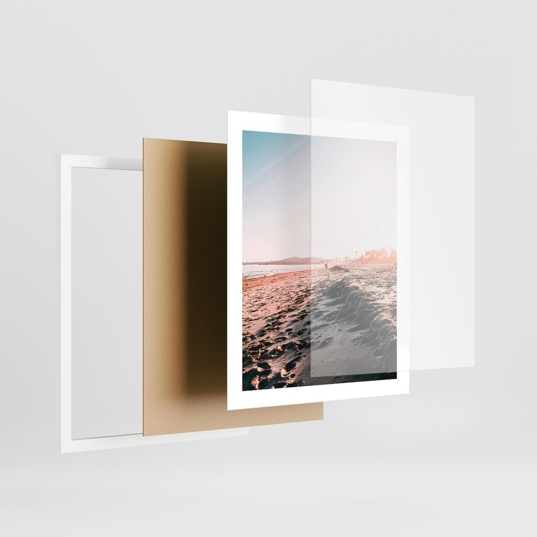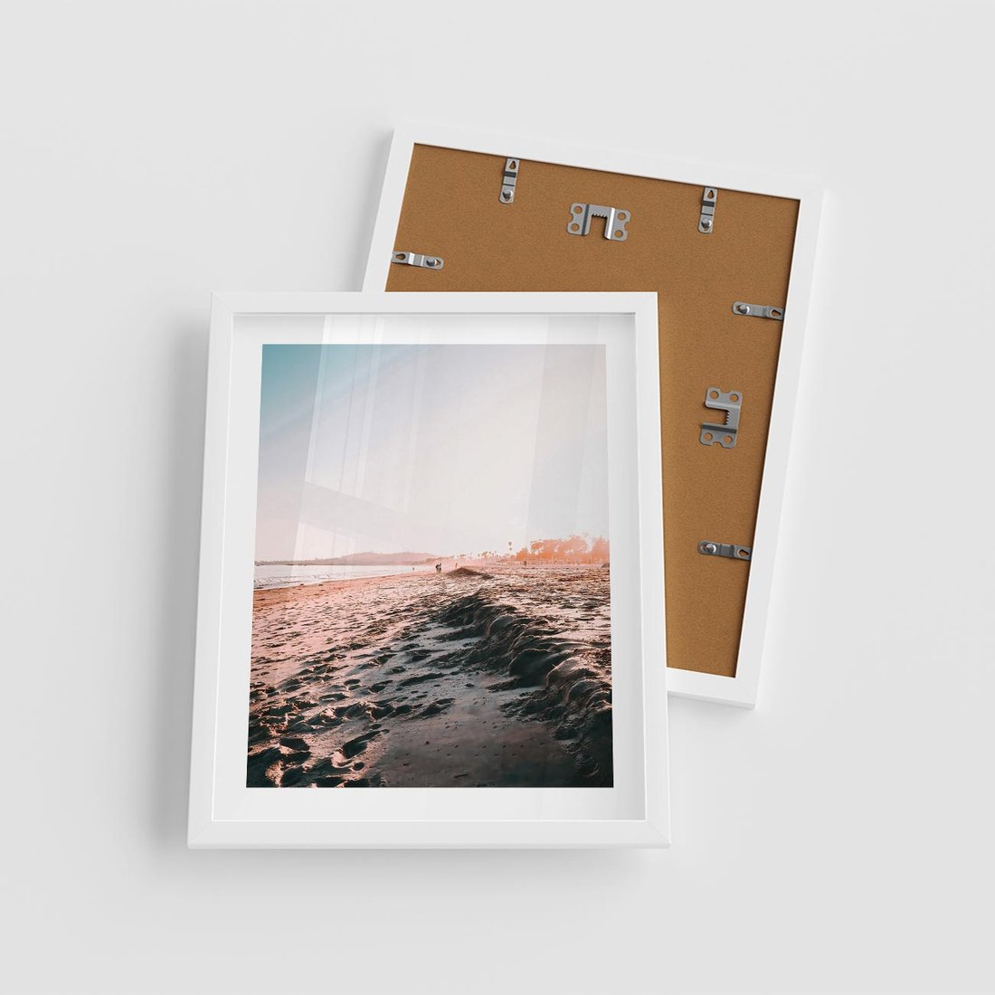 Plakat w ramie 40x50 - Błogie Chwile na Plaży - plaża, zachód słońca wakacje - rama biała