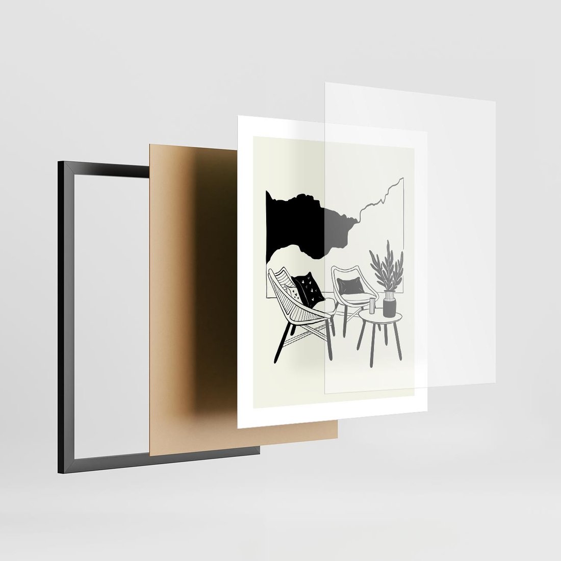 Plakat w ramie 40x50 - Boho Elegancja - boho wnętrze, salon - rama czarna