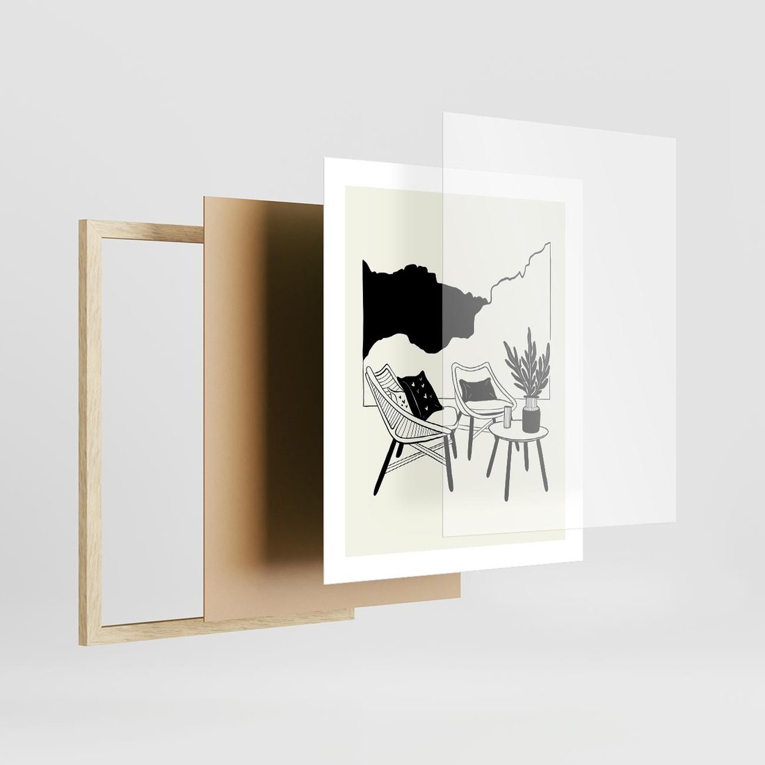 Plakat w ramie 40x50 - Boho Elegancja - boho wnętrze, salon - rama drewno