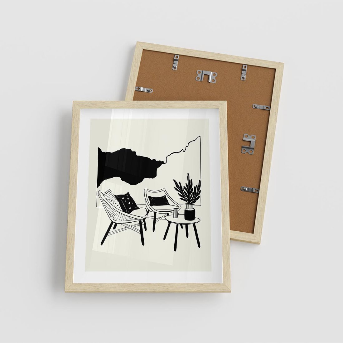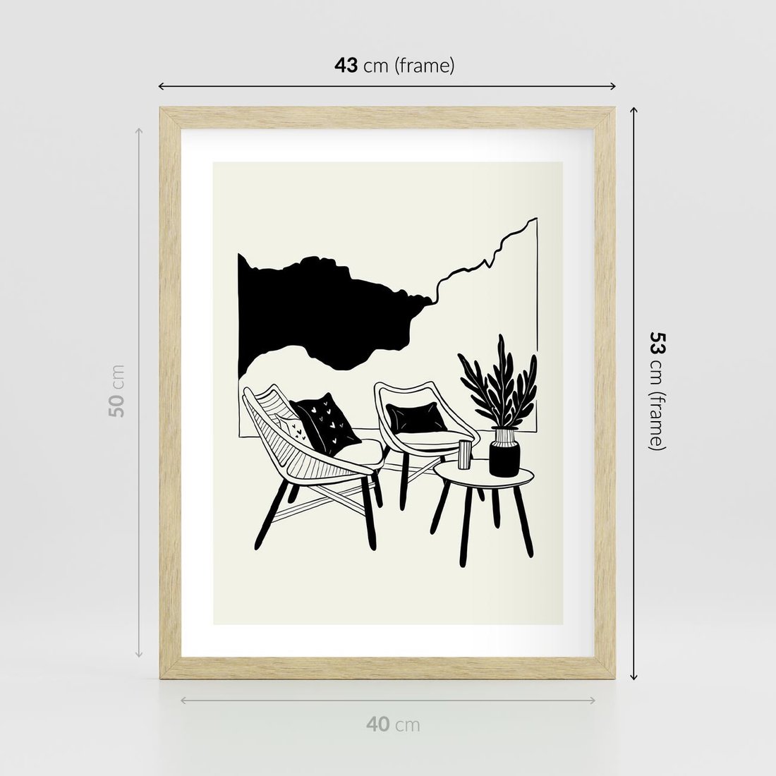 Ten biało-czarny rysunek doskonale wpisuje się w boho wnętrze salonu, łącząc nowoczesną sztukę z duchem swobodnego stylu. Kreuje on harmonijną atmosferę, dodając salonowi wyjątkowy urok.