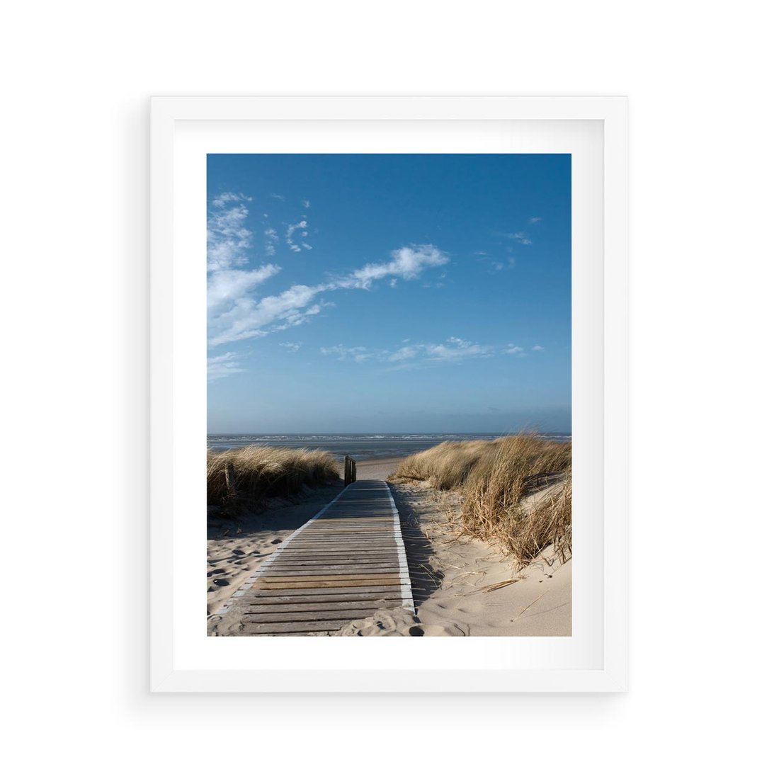 Plakat w ramie 40x50 - Boho na Plaży - plaża, pomost - rama biała