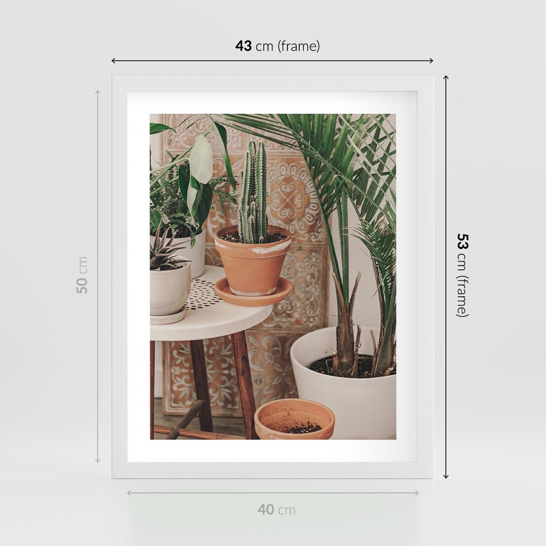 - Plakat w ramie 40x50 - Boho Oaza: Kaktusy w Doniczkach