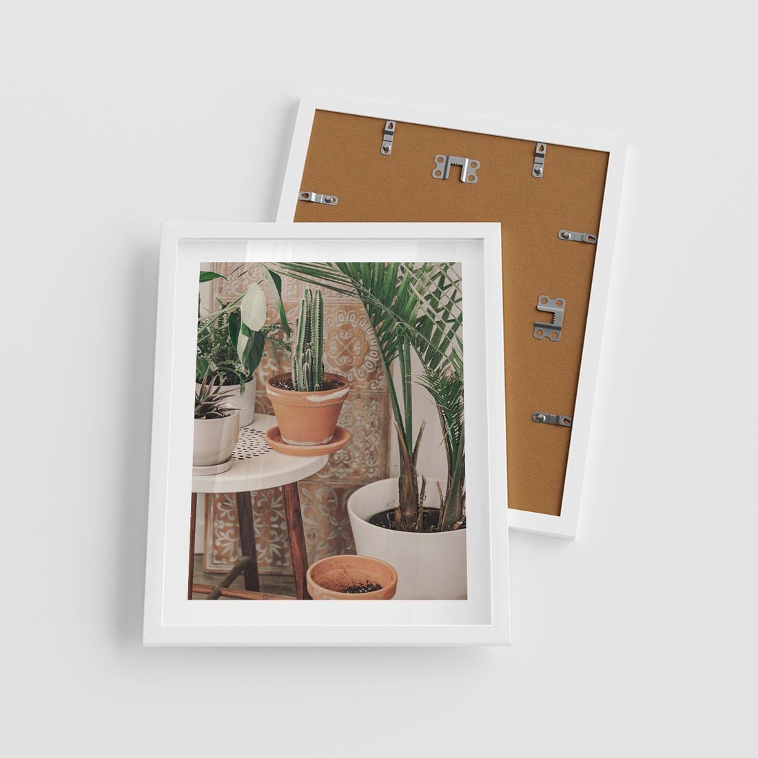 Plakat w ramie 40x50 - Boho Oaza: Kaktusy w Doniczkach - rośliny kaktusy w doniczkach, boho wnętrze - rama biała