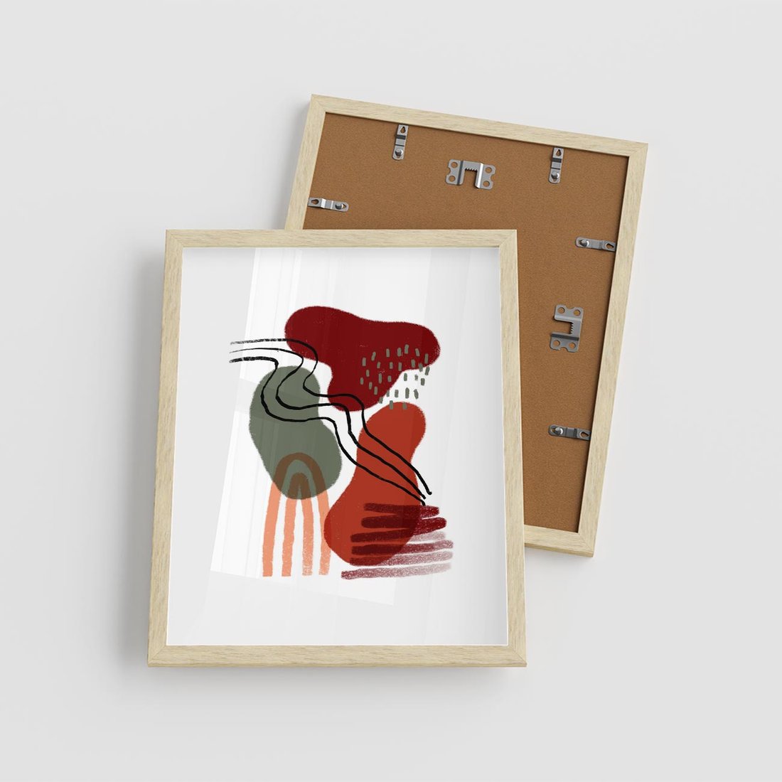 Nasza abstrakcyjna sztuka łączy boho kształty z minimalizmem, idealnie pasując do nowoczesnych wnętrz. To twórcze połączenie wprowadza do Twojej przestrzeni unikalny charakter i wyraz artystyczny, zachwycając jednocześnie prostotą i harmonią.