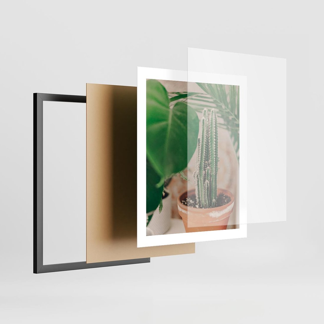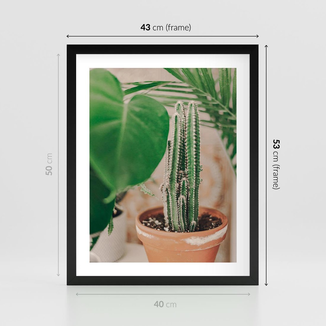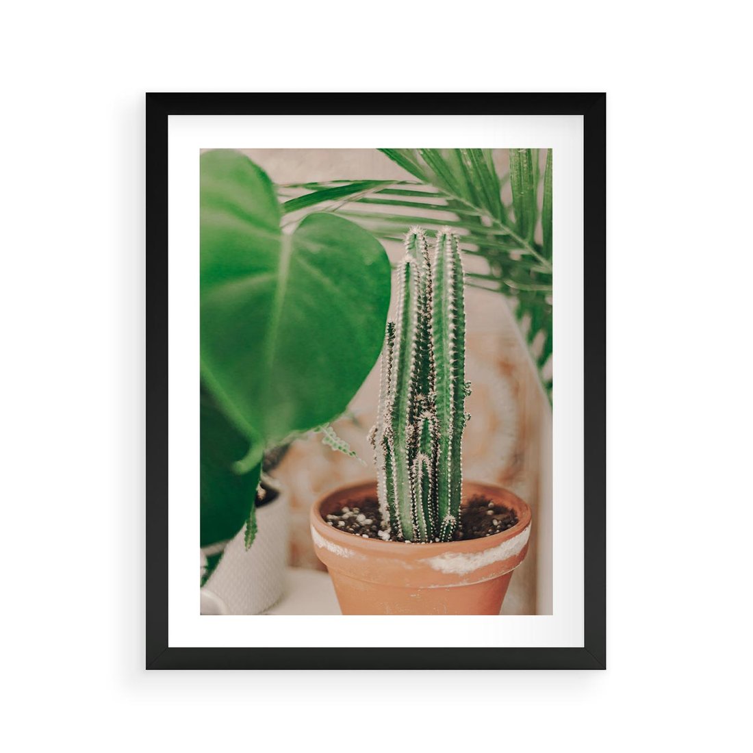 Plakat w ramie 40x50 - Boho Urok - kaktus w doniczce, gliniana doniczka - rama czarna