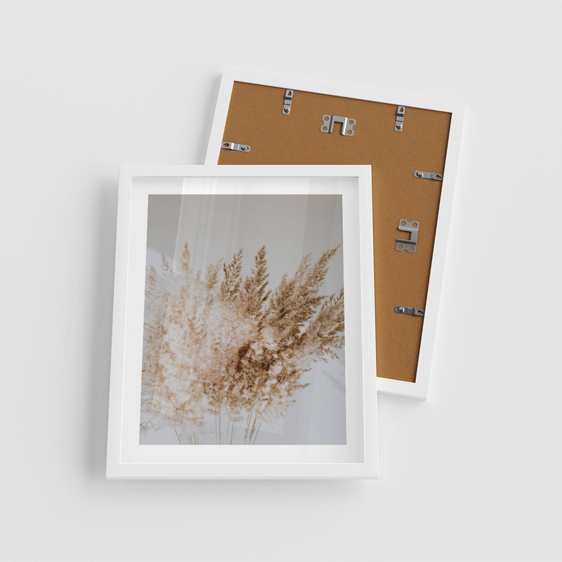 Plakat w ramie 40x50 - Boho Urok Traw Pampasowych - suche trawy, pampas - rama biała